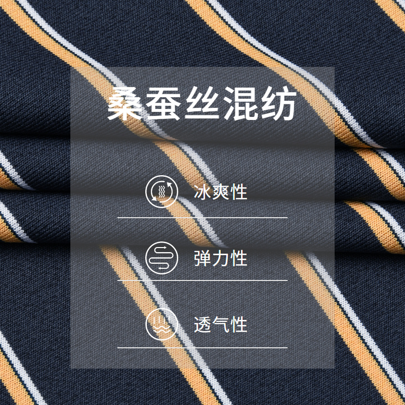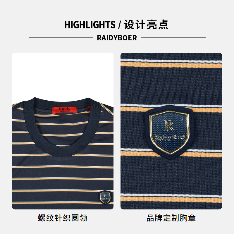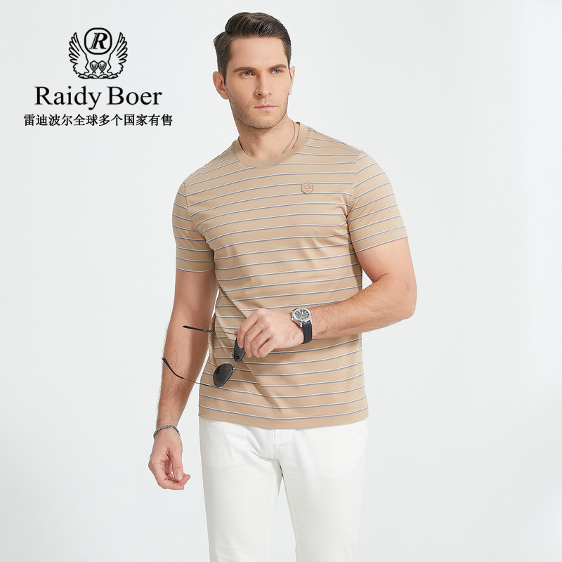 Raidy Boer/雷迪波尔男装品牌胸章经典条纹桑蚕丝混纺短袖T恤7029