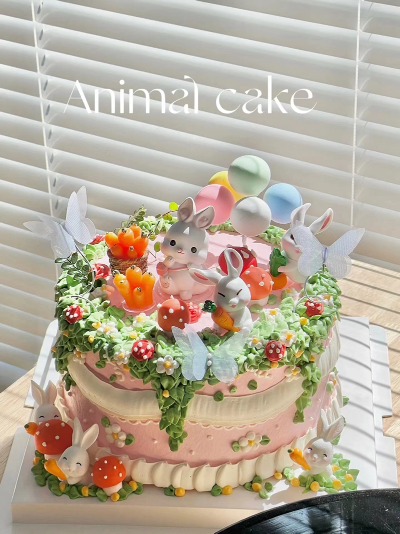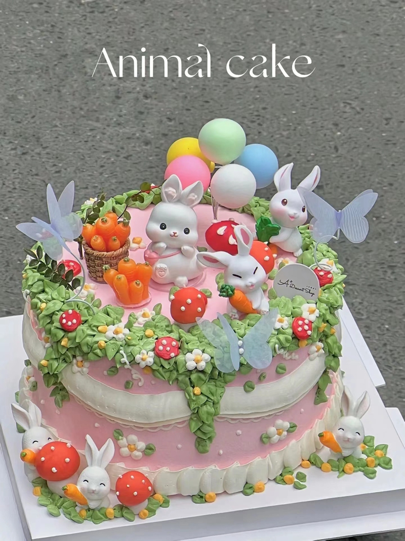 小兔子蛋糕装饰摆件胡萝卜蘑菇热卖气球花朵宝宝生日快乐插件插牌