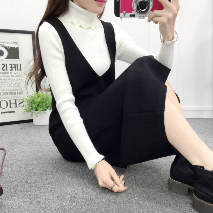 背带长裙女春秋吊带长款打底裙口袋V领A字裙背心裙宽松马甲连衣裙