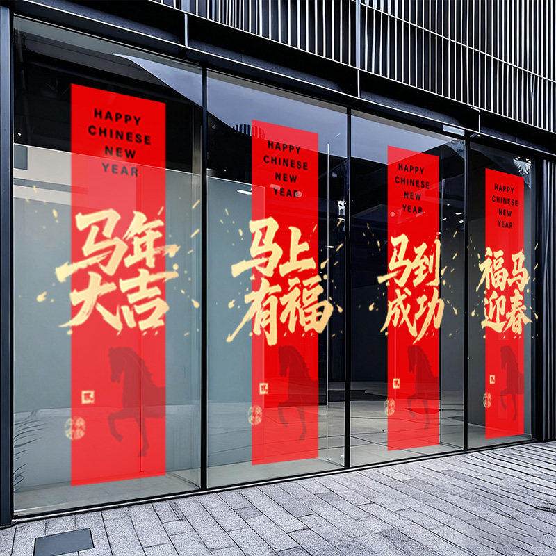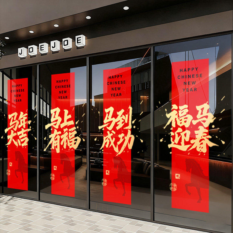 2026新年玻璃贴纸春节装饰布置静电贴玻璃贴门贴窗贴马年窗花场景