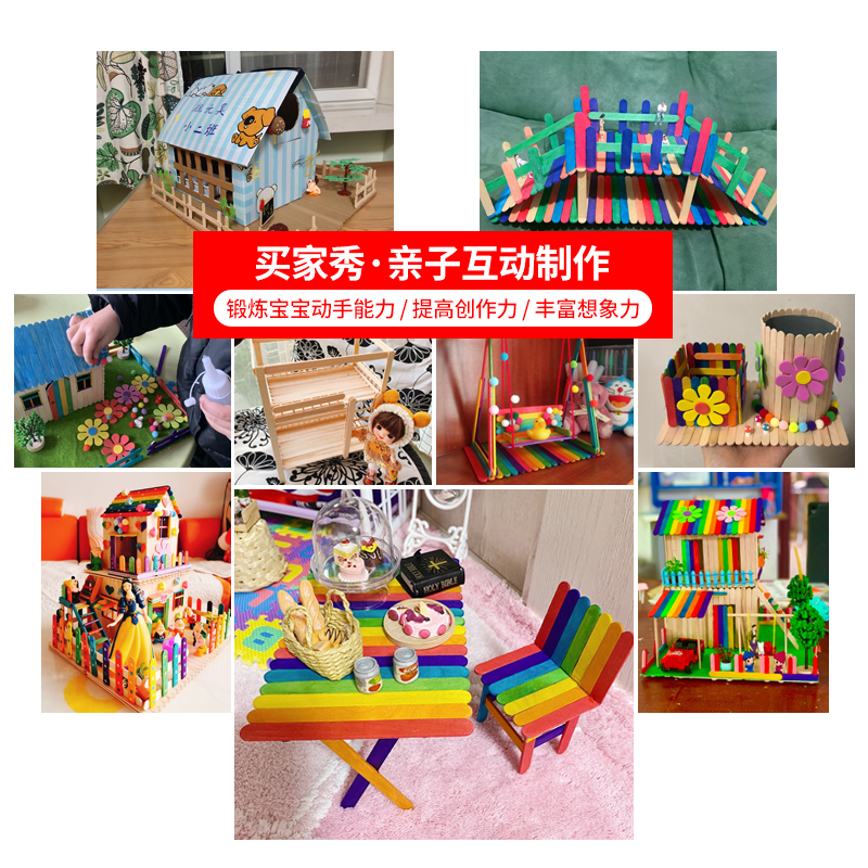 彩色秋千儿童幼儿园手工制作材料包雪糕棒冰棒棍diy房子创意木片