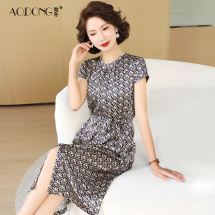 新款真丝桑蚕丝连衣裙女高级修身妈妈重磅丝绸气质裙子夏季