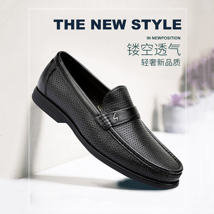 沙驰男鞋皮鞋夏季真皮镂空皮鞋套脚凉鞋男士商务休闲鞋透气乐福鞋