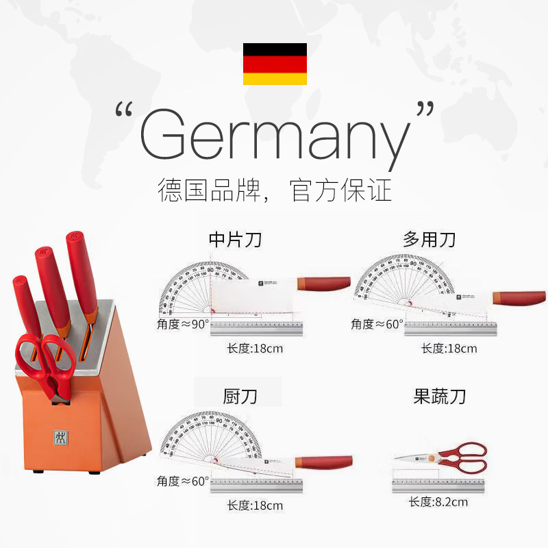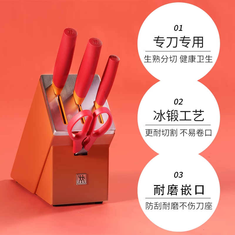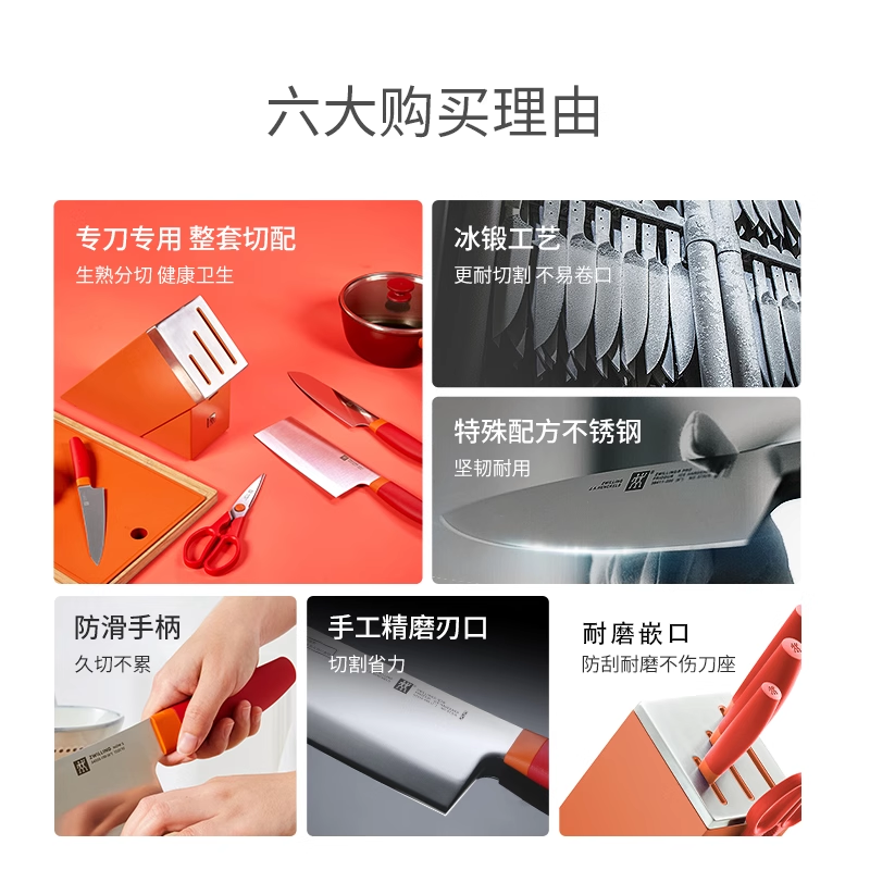 【自营】双立人刀具套装石榴红5件套家用厨房不锈钢切片刀砍菜刀