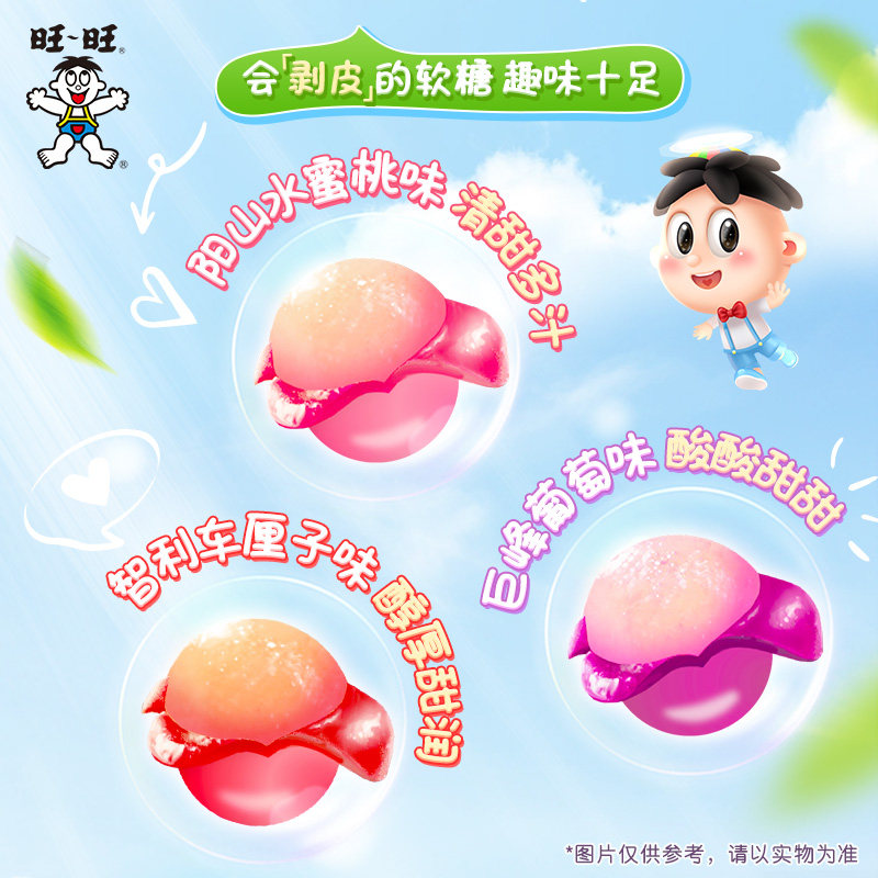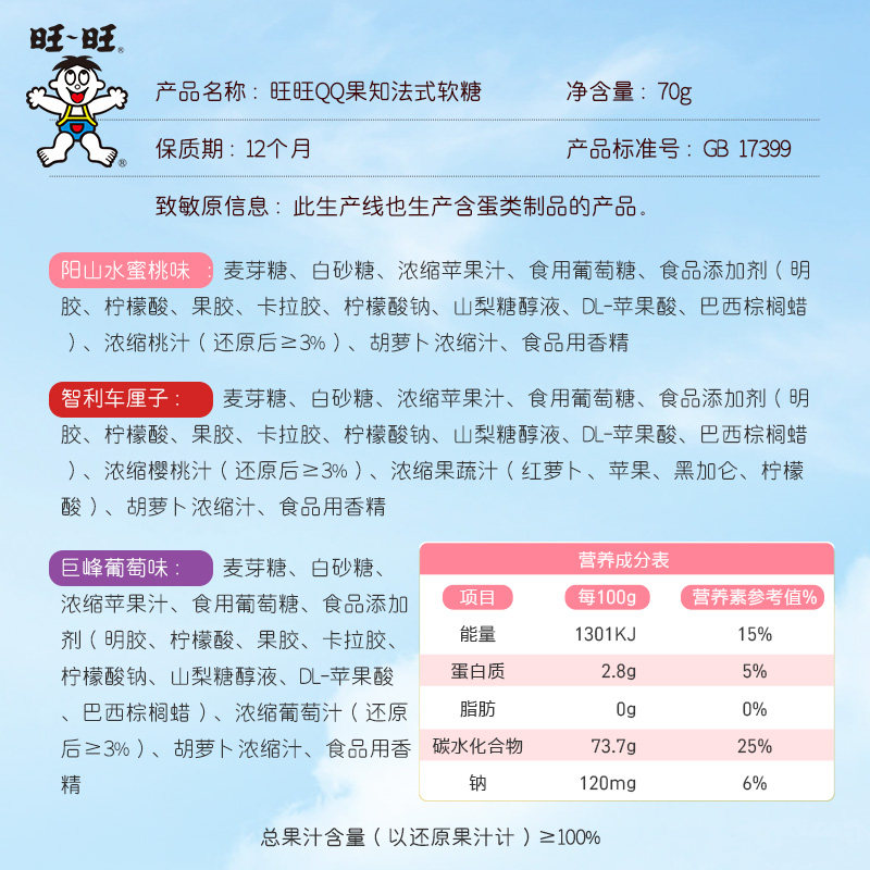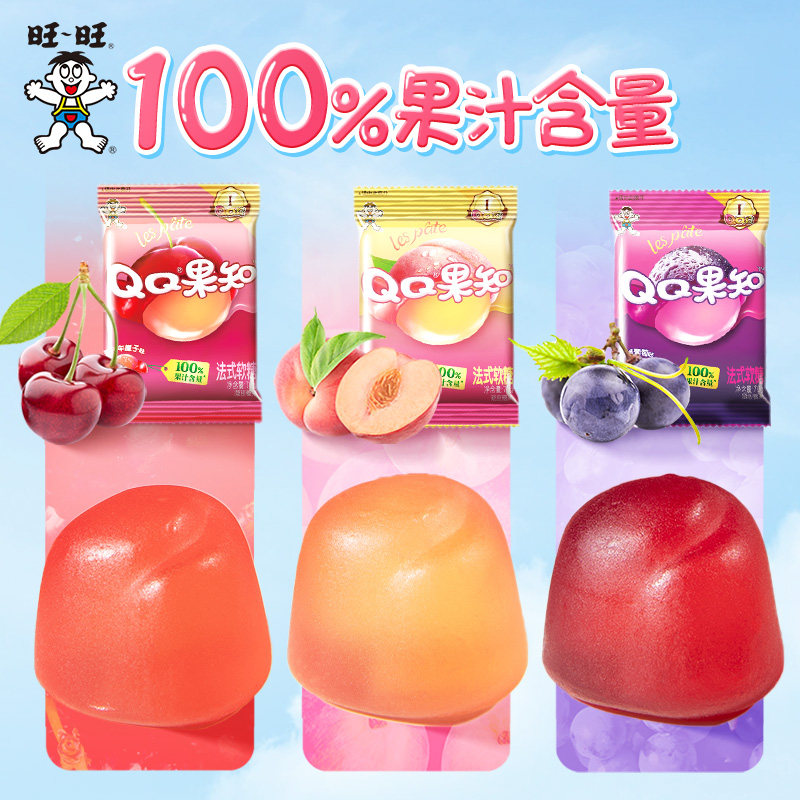 旺旺QQ果知法式软糖果汁剥皮软糖0脂肪蜜桃葡萄车厘子味水果糖