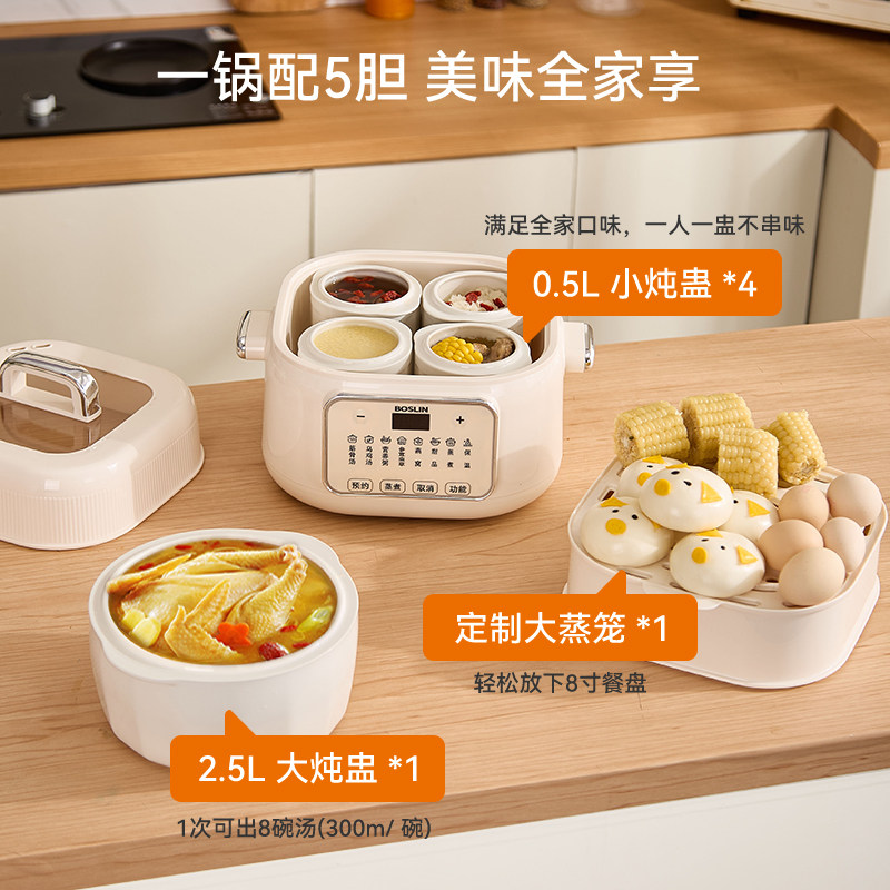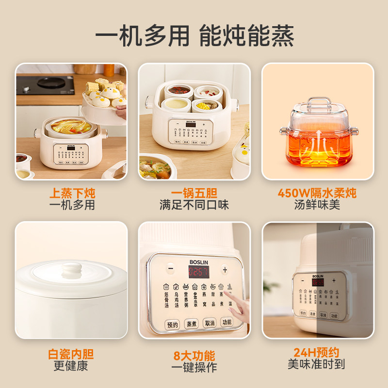 BOSLIN泊仕菱隔水炖电炖锅家用陶瓷电炖盅电蒸锅全自动煲汤煲粥锅