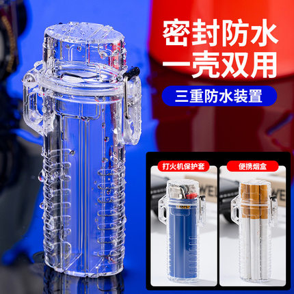 4支装迷你烟盒透明防水控烟卷烟收纳筒便携个性多功能打火机套