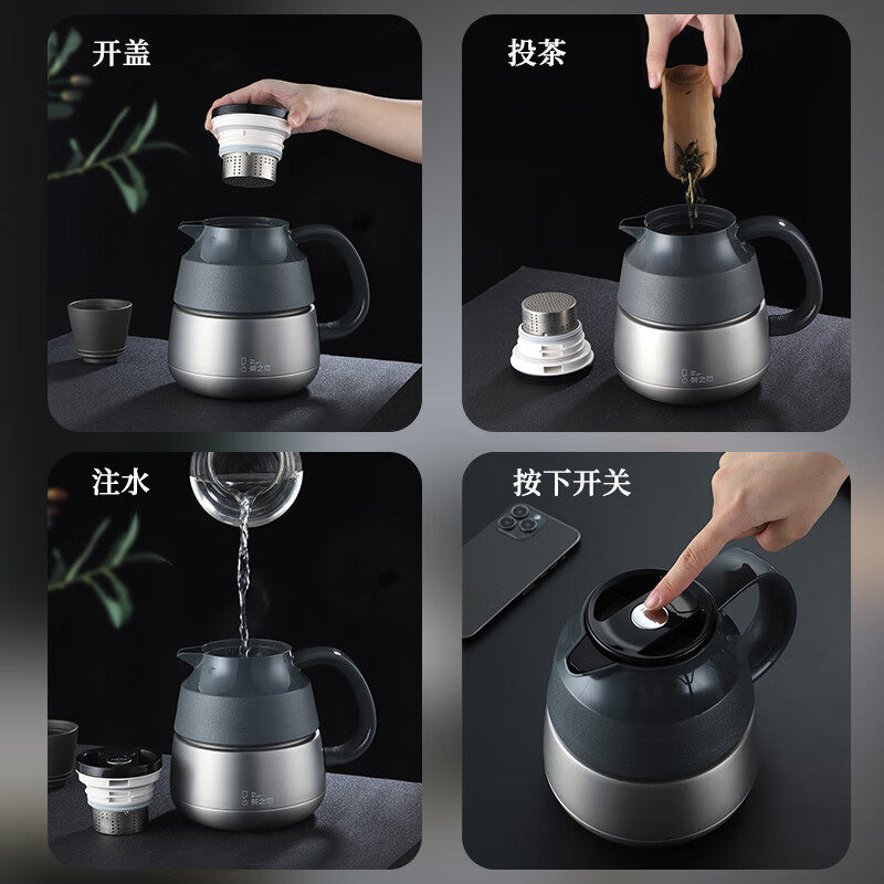 茶之恋 智能显温纯钛茶隔闷茶壶大容量保温壶家用车载过滤闷泡壶