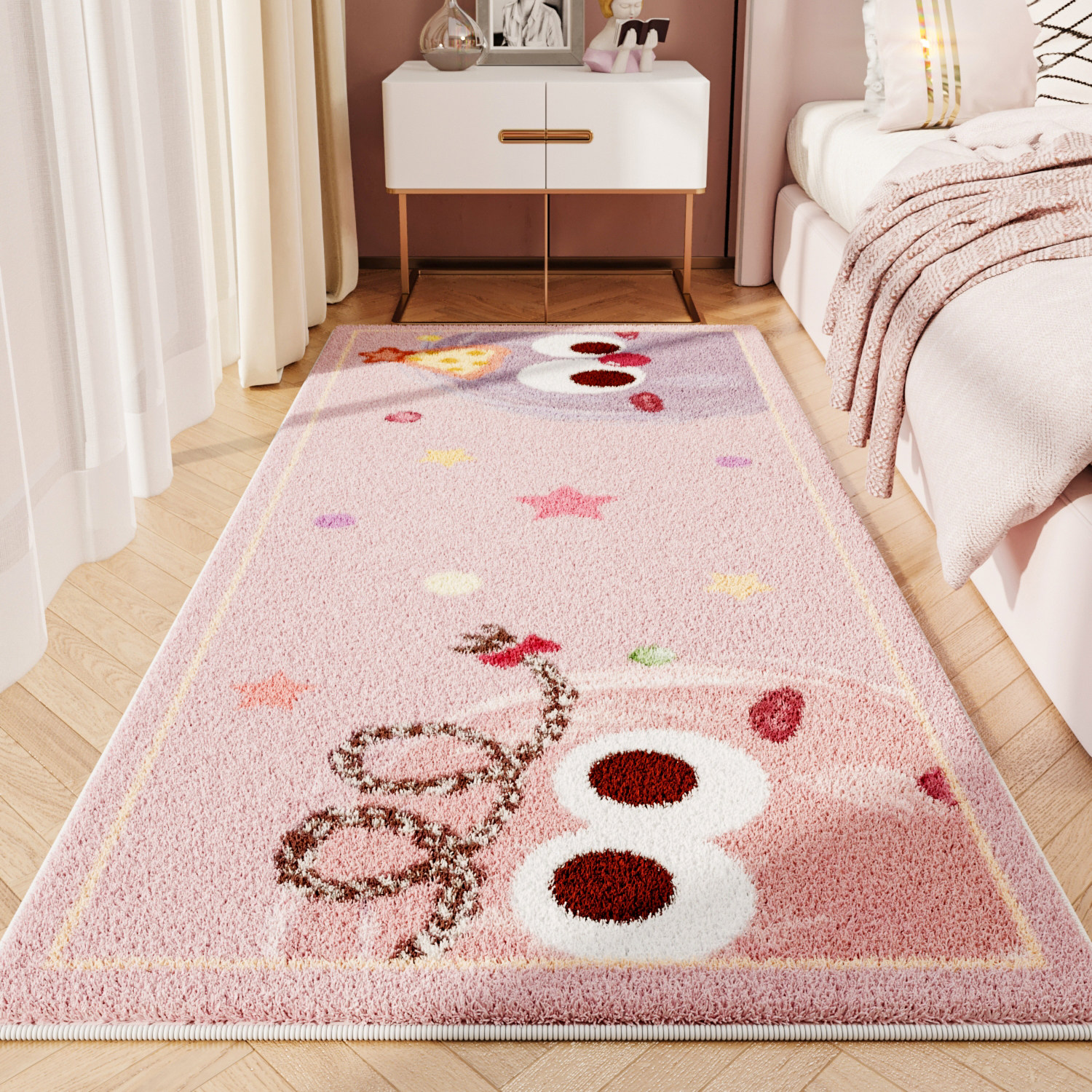 儿童房间床边防摔地垫女孩卧室床头地毯卡通加厚飘窗垫榻榻米垫子