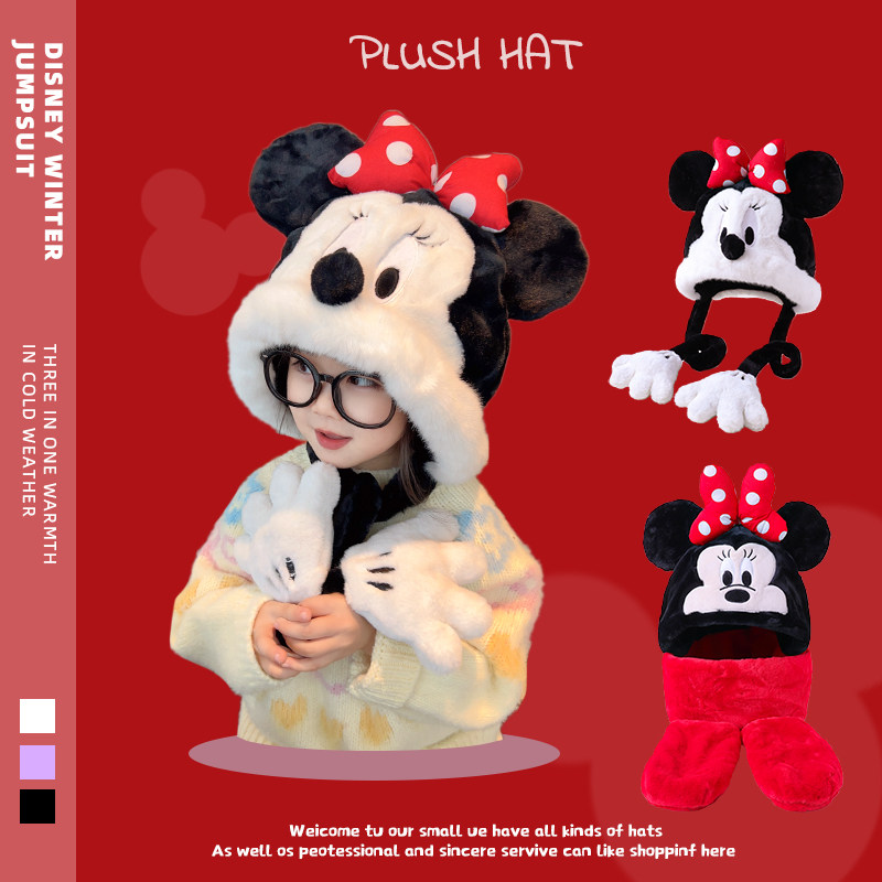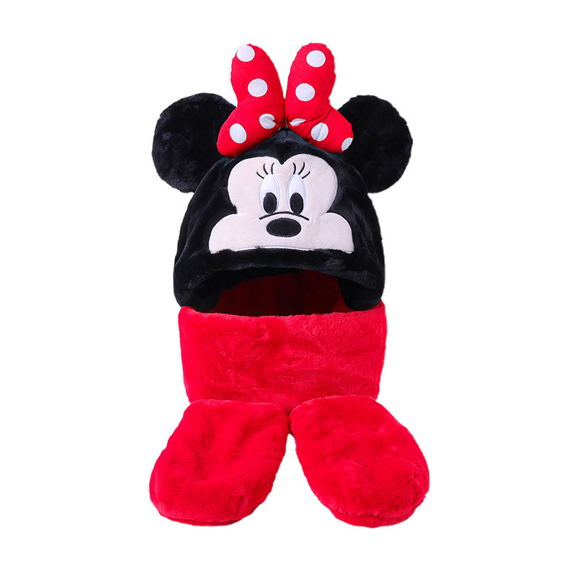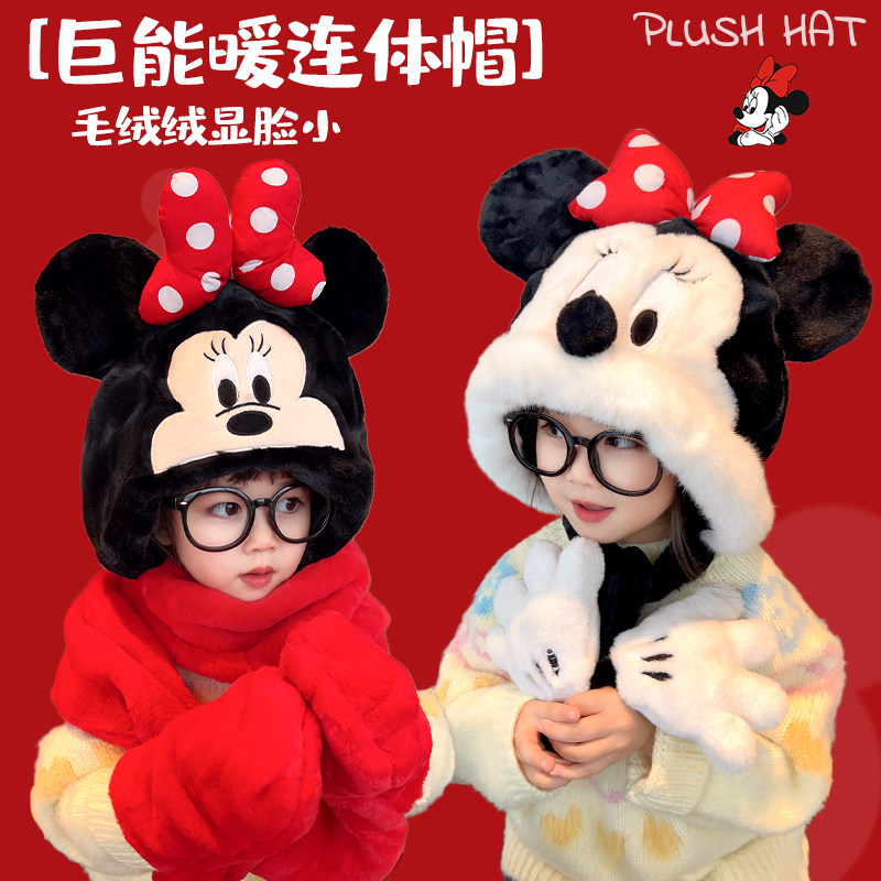 正版迪士尼授权儿童秋冬帽子围巾手套一体帽男童女孩加绒加厚保暖