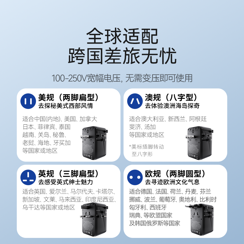 MOMAX摩米士全球通用转换插头欧美英日韩泰国100W氮化镓旅行插座