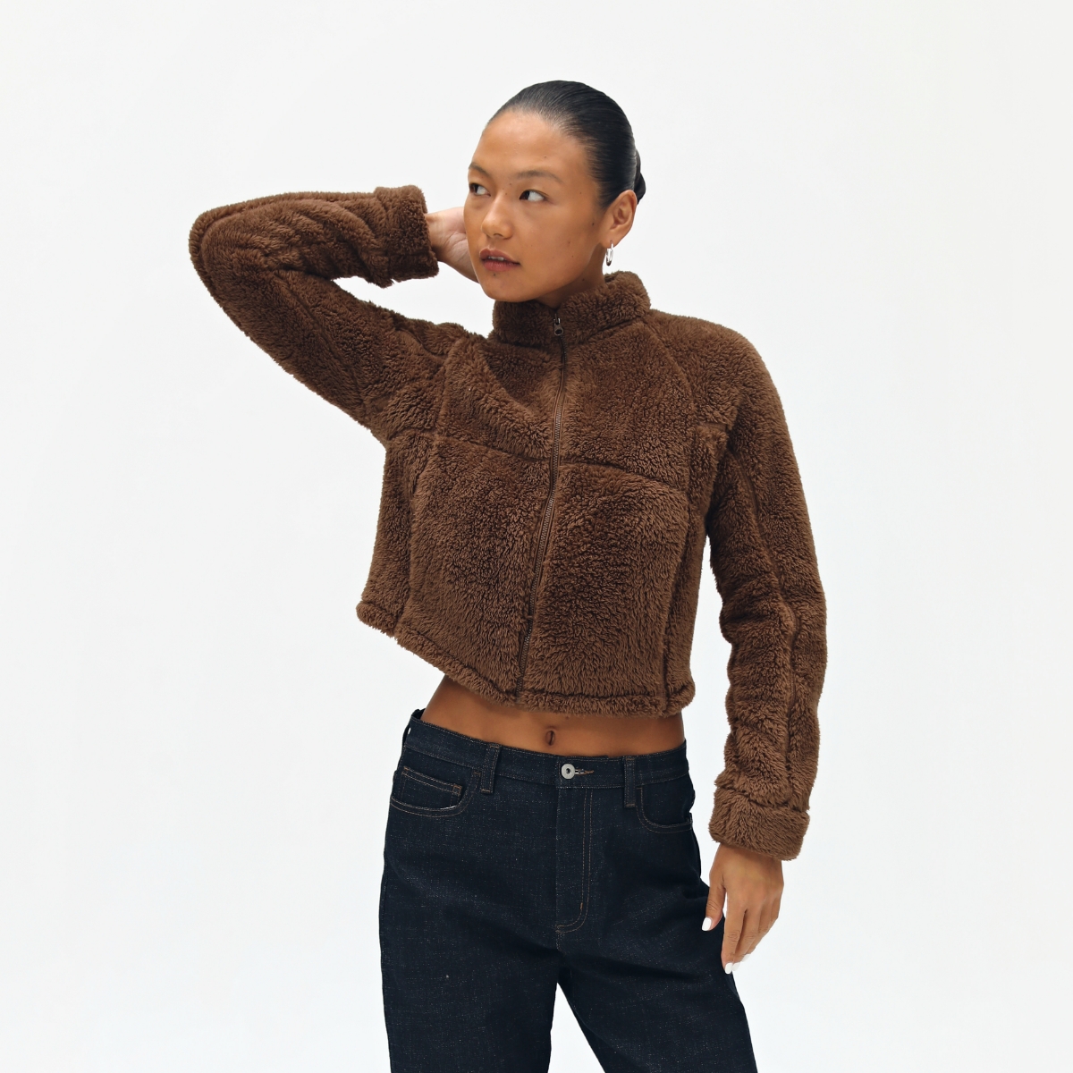 oneup美式长绒加厚短款摇粒绒外套女秋冬小个子粉色修身毛绒上衣