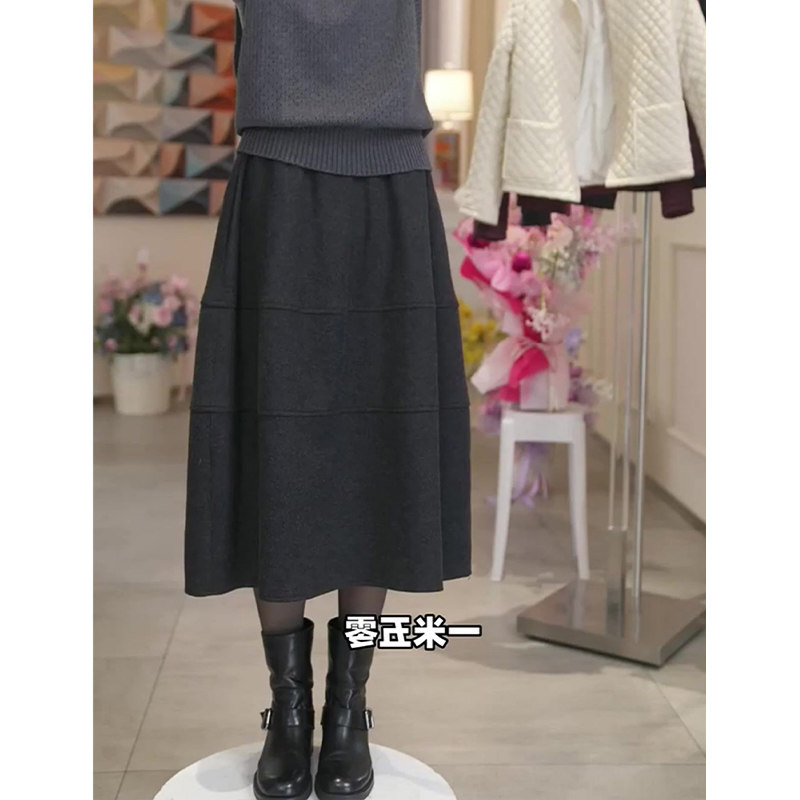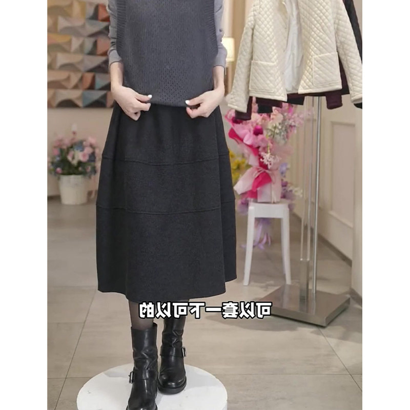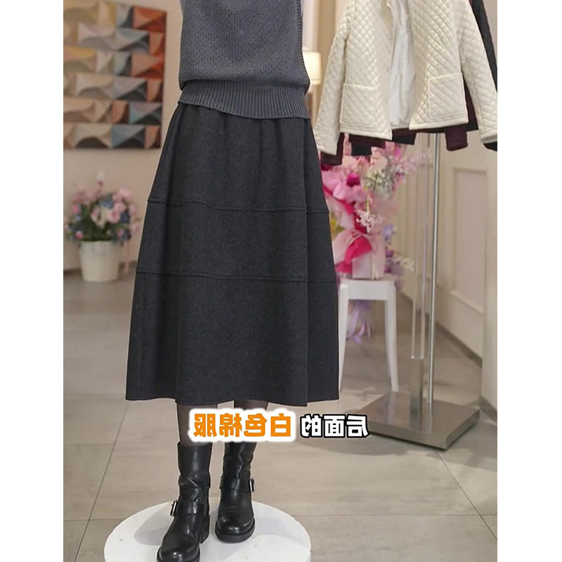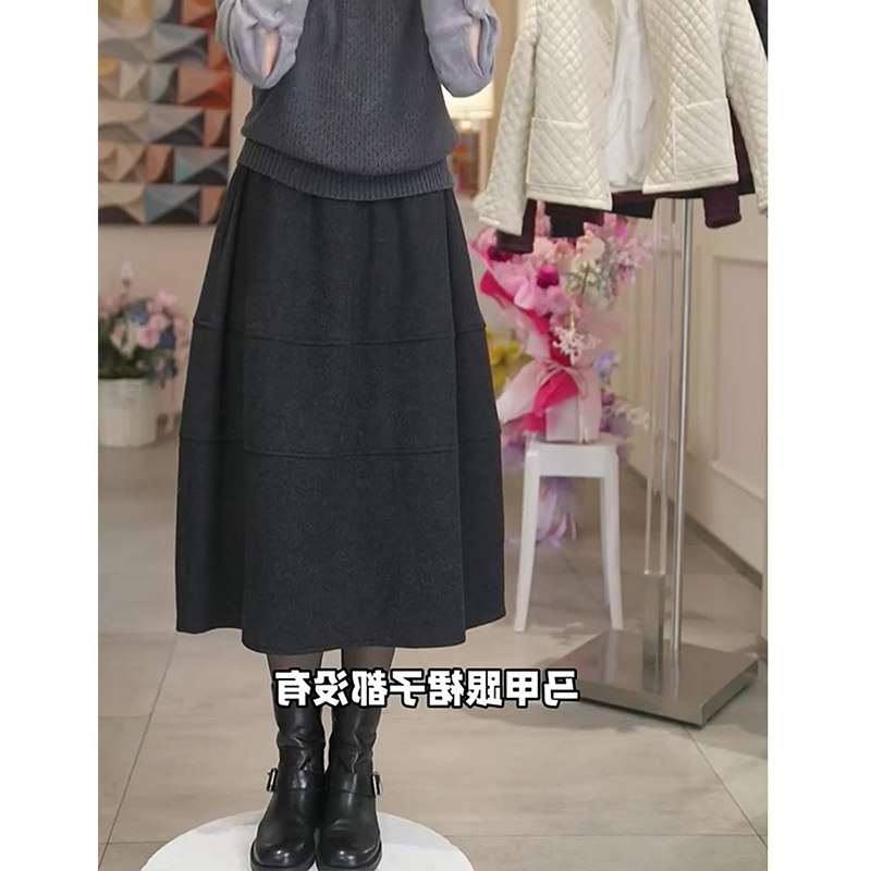 灰色毛呢花苞裙女秋冬新款高腰显瘦遮肉时尚百搭洋气休闲半身裙子