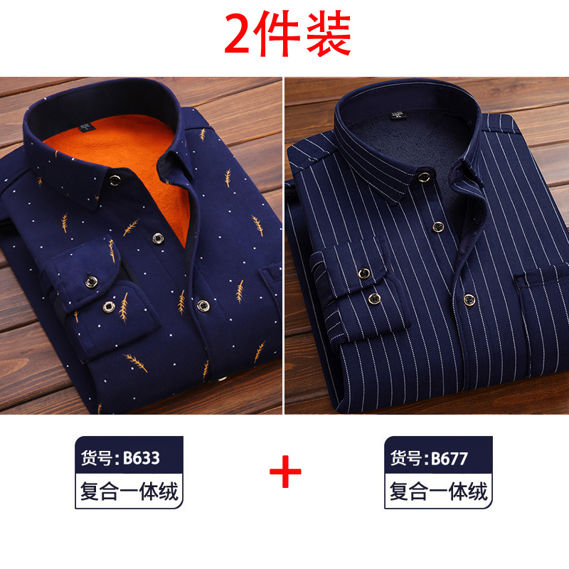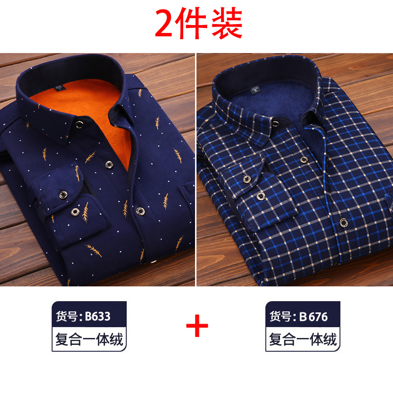 秋季男士保暖衬衫加绒加厚长袖修身格子衬衣韩版潮流上衣服男装寸