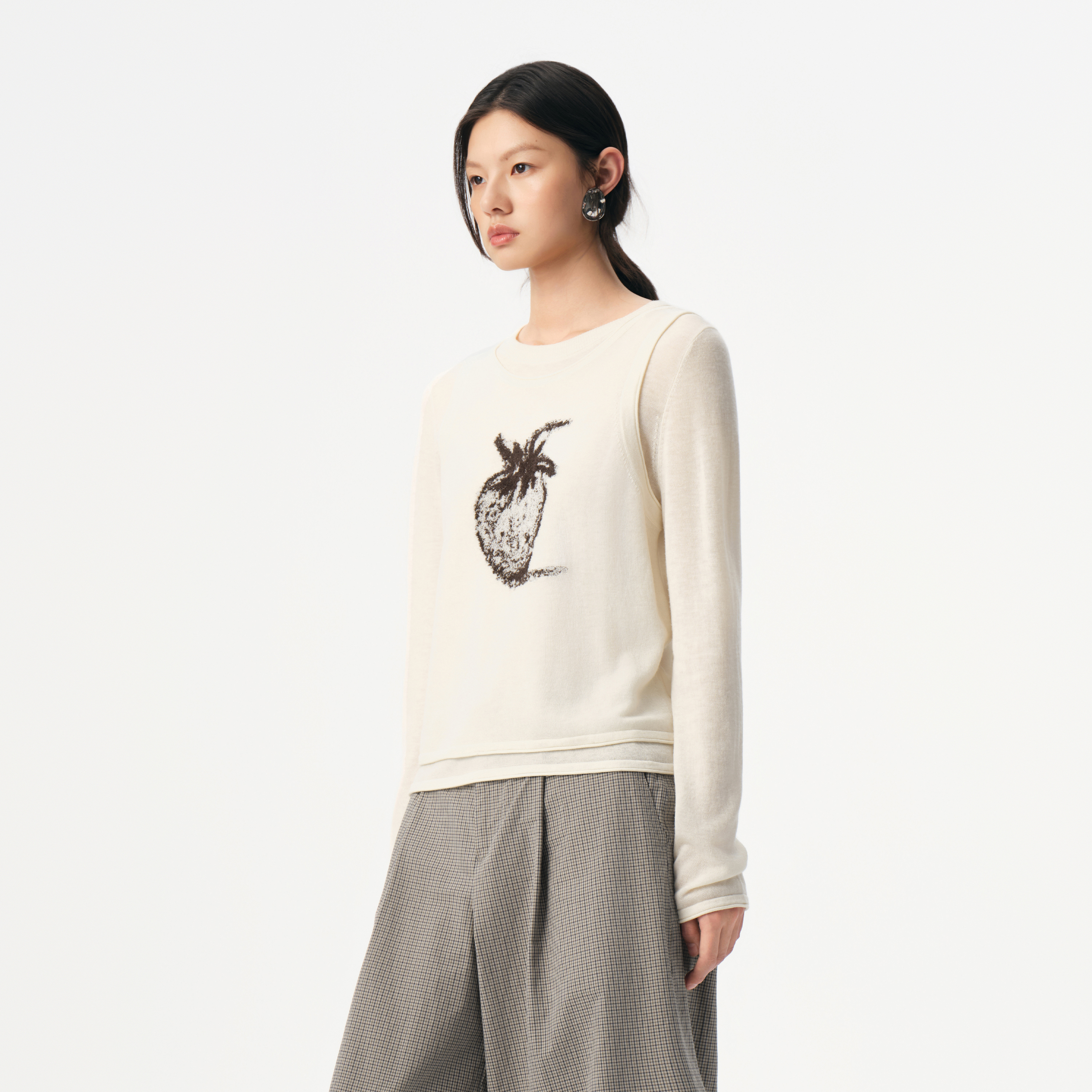 【100%羊毛】播商场同款假两件套头针织衫女25秋季新款BDS3SD3252