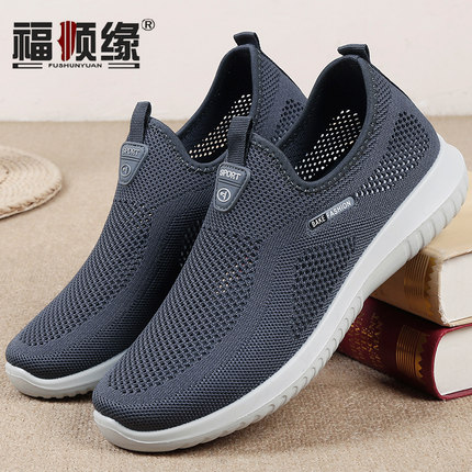 福顺缘夏透气飞织网面布鞋软底软面网眼男鞋宽松大码男网鞋情侣款