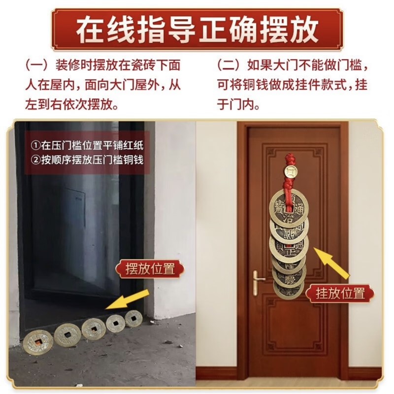 五帝钱门对门纯铜葫芦真品铜钱串大门G口卧室压门槛中国吉祥结挂