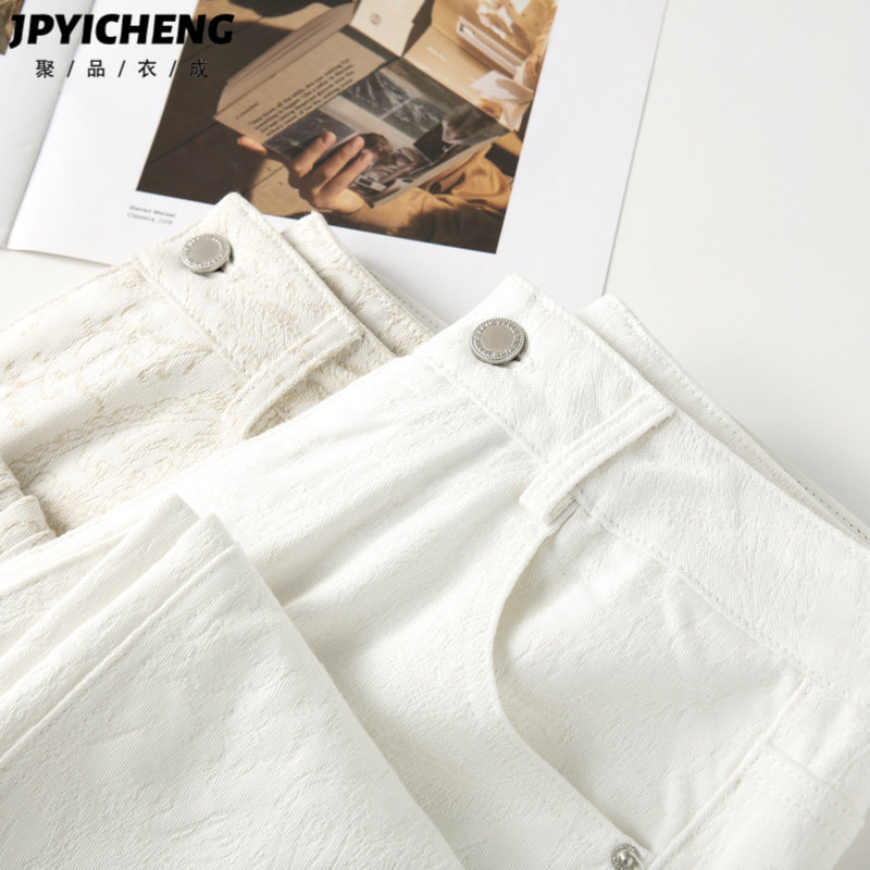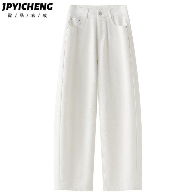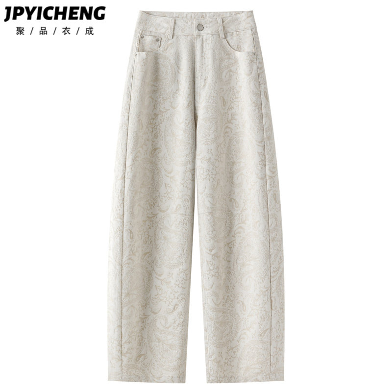国风水墨提花弯刀牛仔裤女2026新款春季高腰宽松镰刀裤慵懒哈伦裤