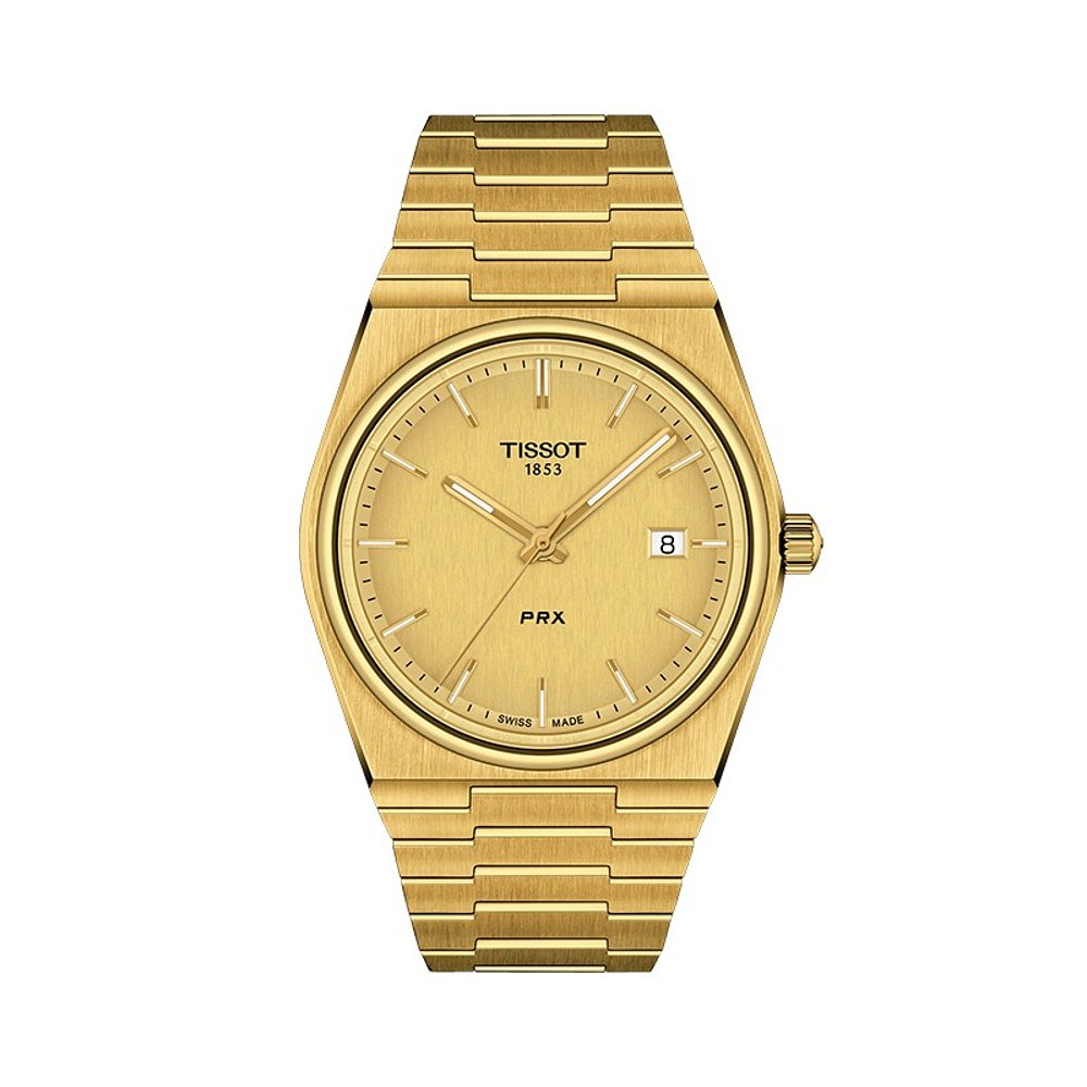 自营欧洲直邮Tissot天梭PRX系列男士精钢表带腕表金色表盘石英机