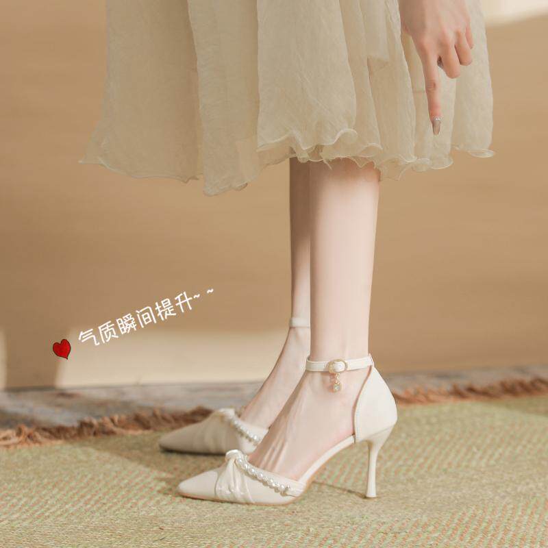 绝美2025春夏新款一字扣带中空凉鞋脚宽脚胖大码包头高跟鞋宽胖脚