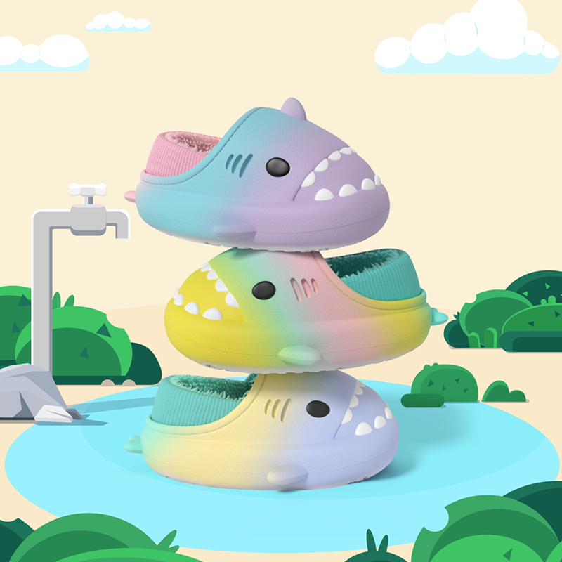 彩虹小鲨鱼儿童棉拖鞋男女童冬季