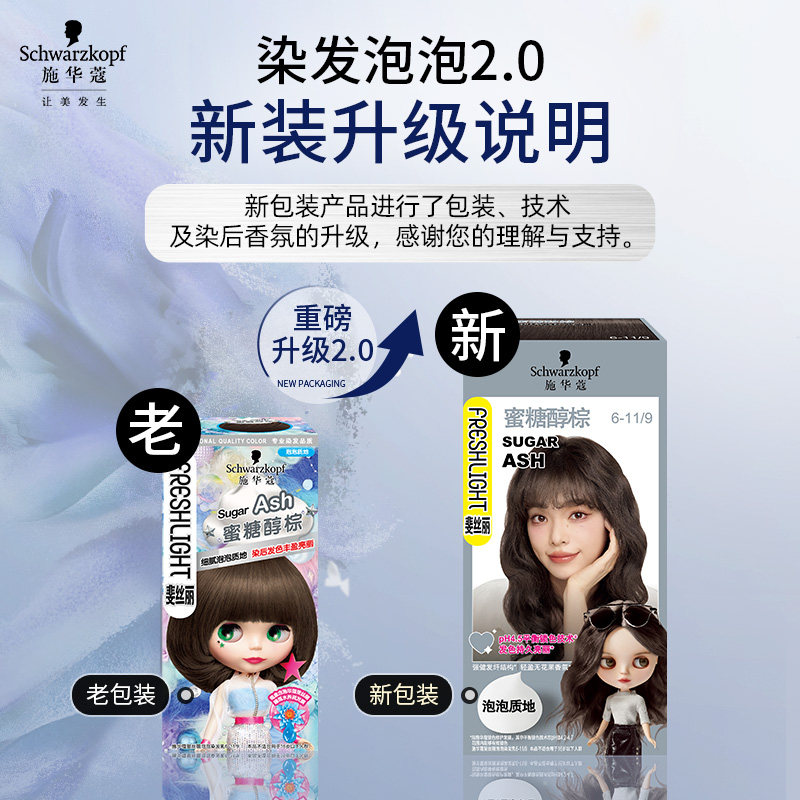 施华蔻泡泡染发剂自己在家染发女黑茶色显白泡沫染发膏霜蜜糖醇棕
