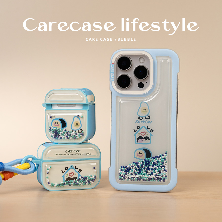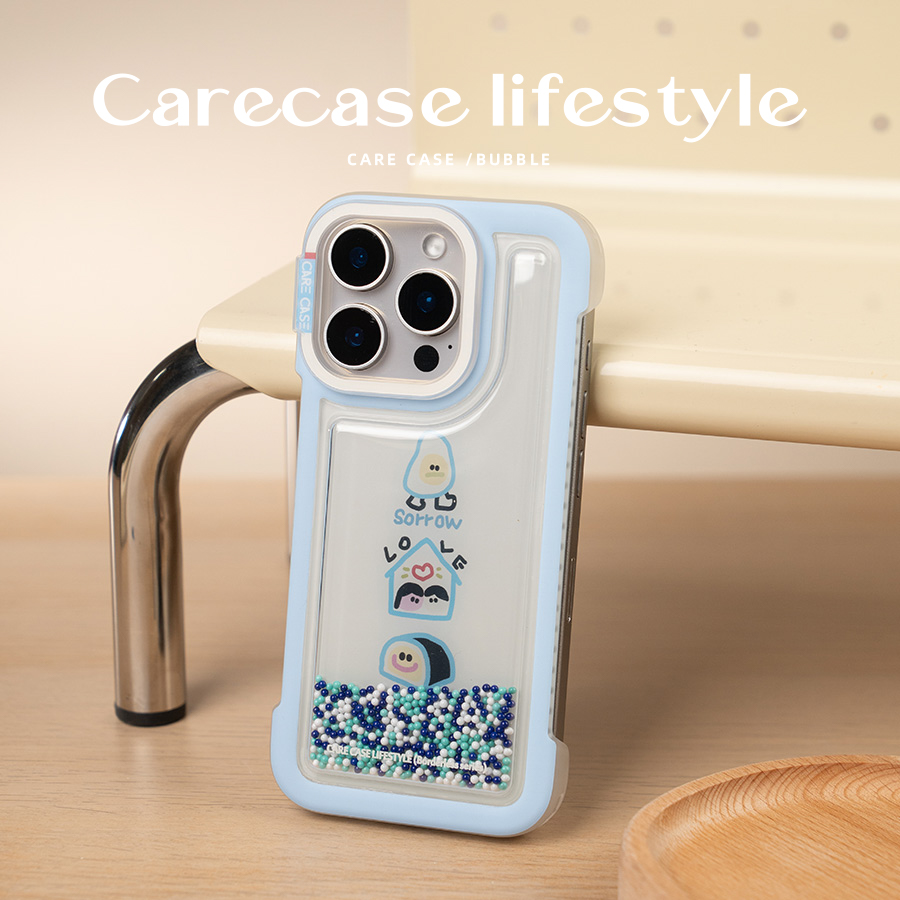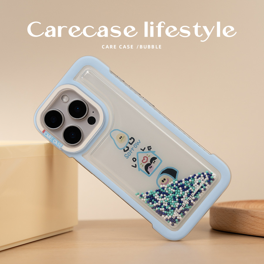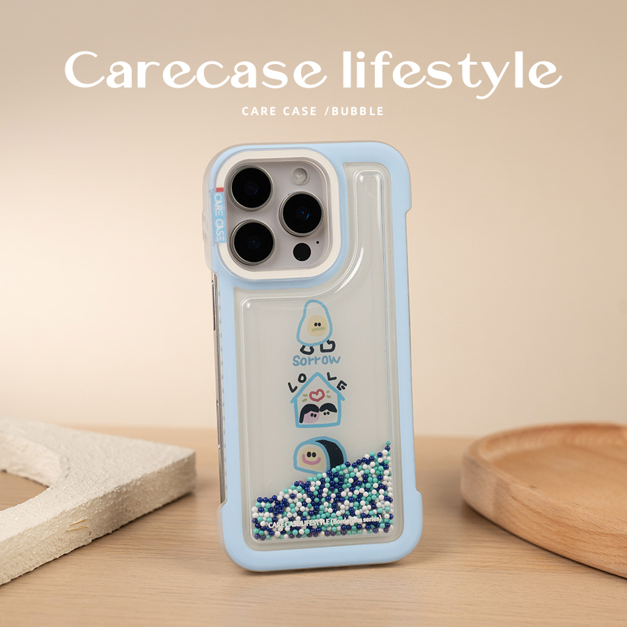 CARECASE 蓝色线条画无边框泡泡珠手机壳 适用于苹果 16 15 14 ProMax 原创设计 小众插画童趣 可摇晃解压