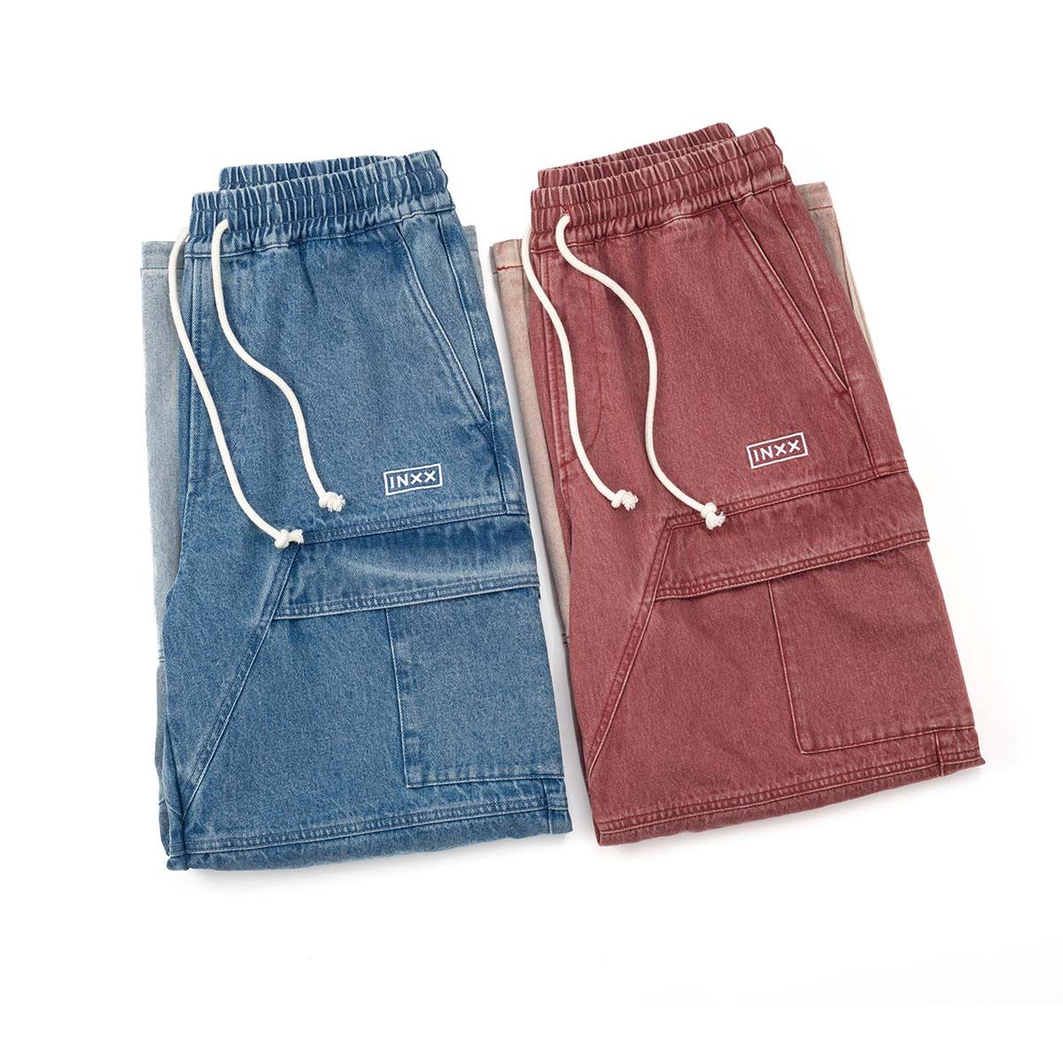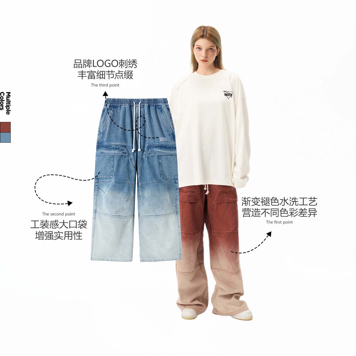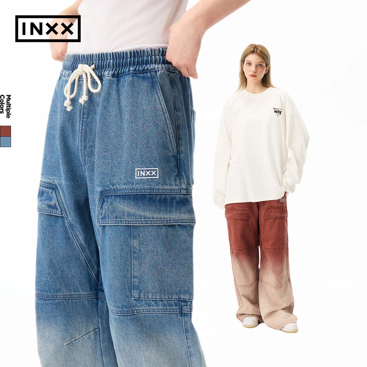 INXX渐变褪色水洗牛仔裤男工装感大口袋直筒裤字母刺绣长裤