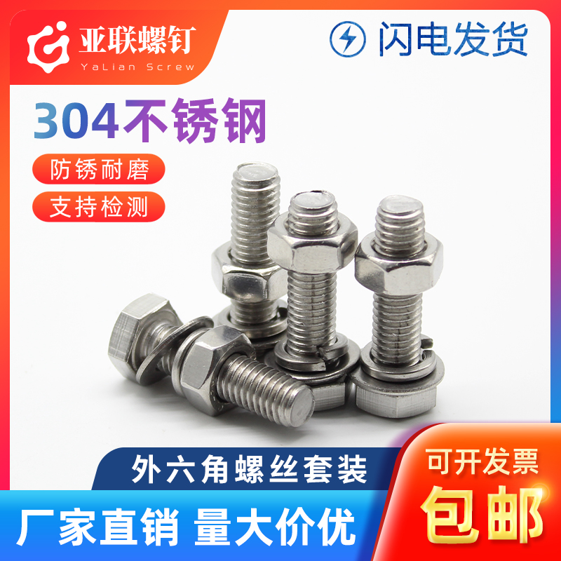 M12M14M16 304不锈钢外六角螺丝螺栓螺母套装大全 加长螺杆A2-70