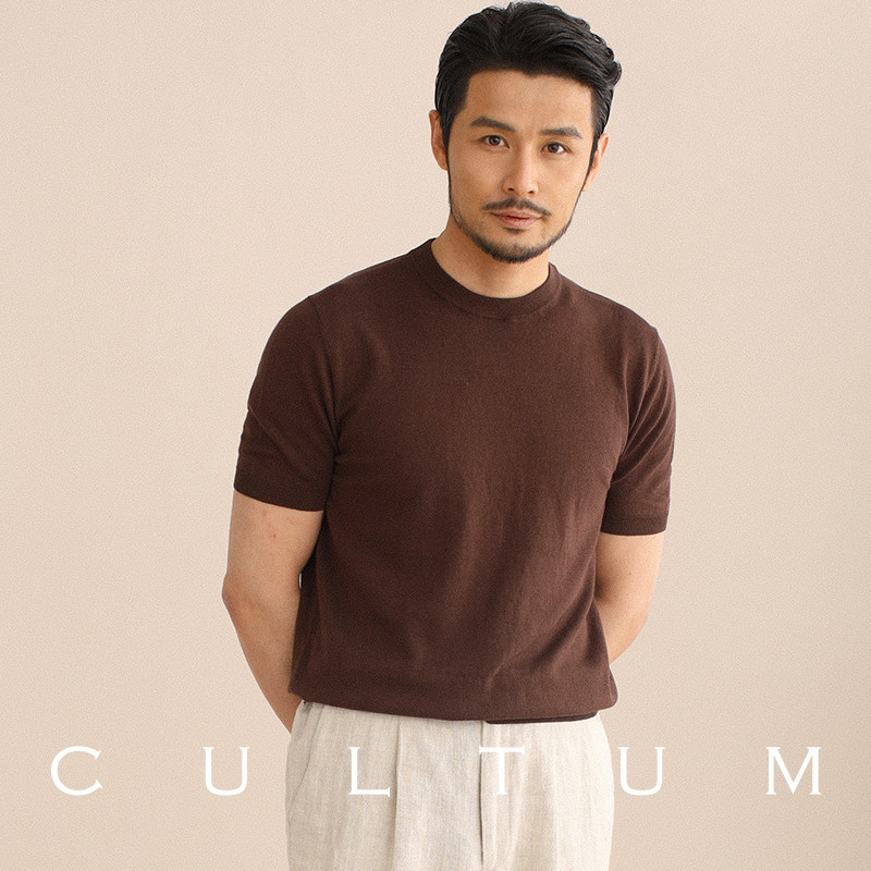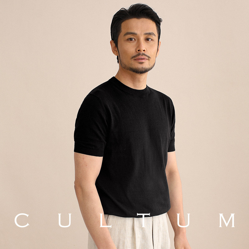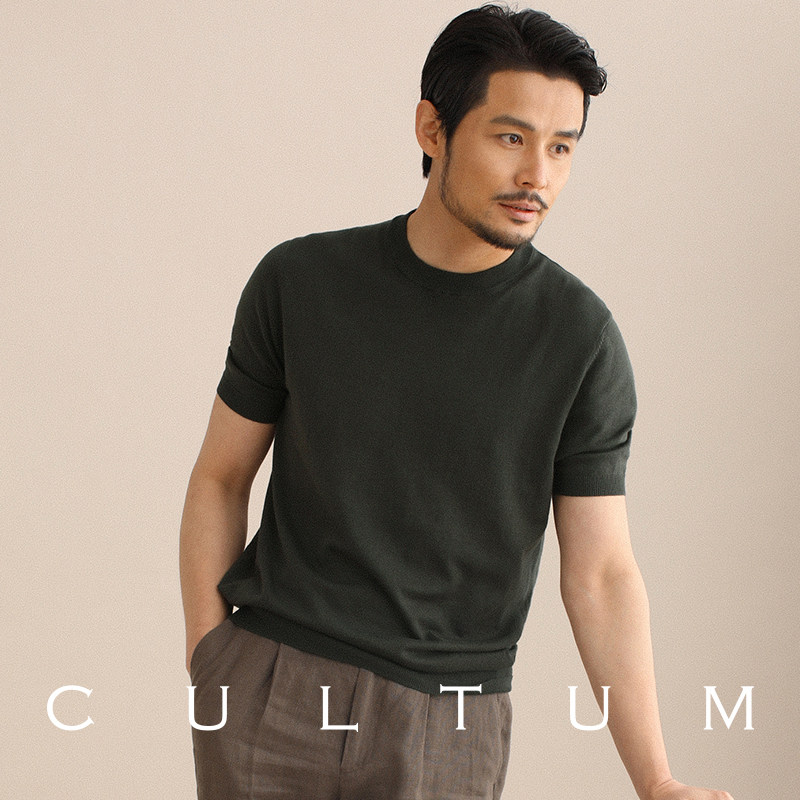 CULTUM夏季薄款透气百搭圆领短袖针织T恤衫男纯色简约基础打底衫