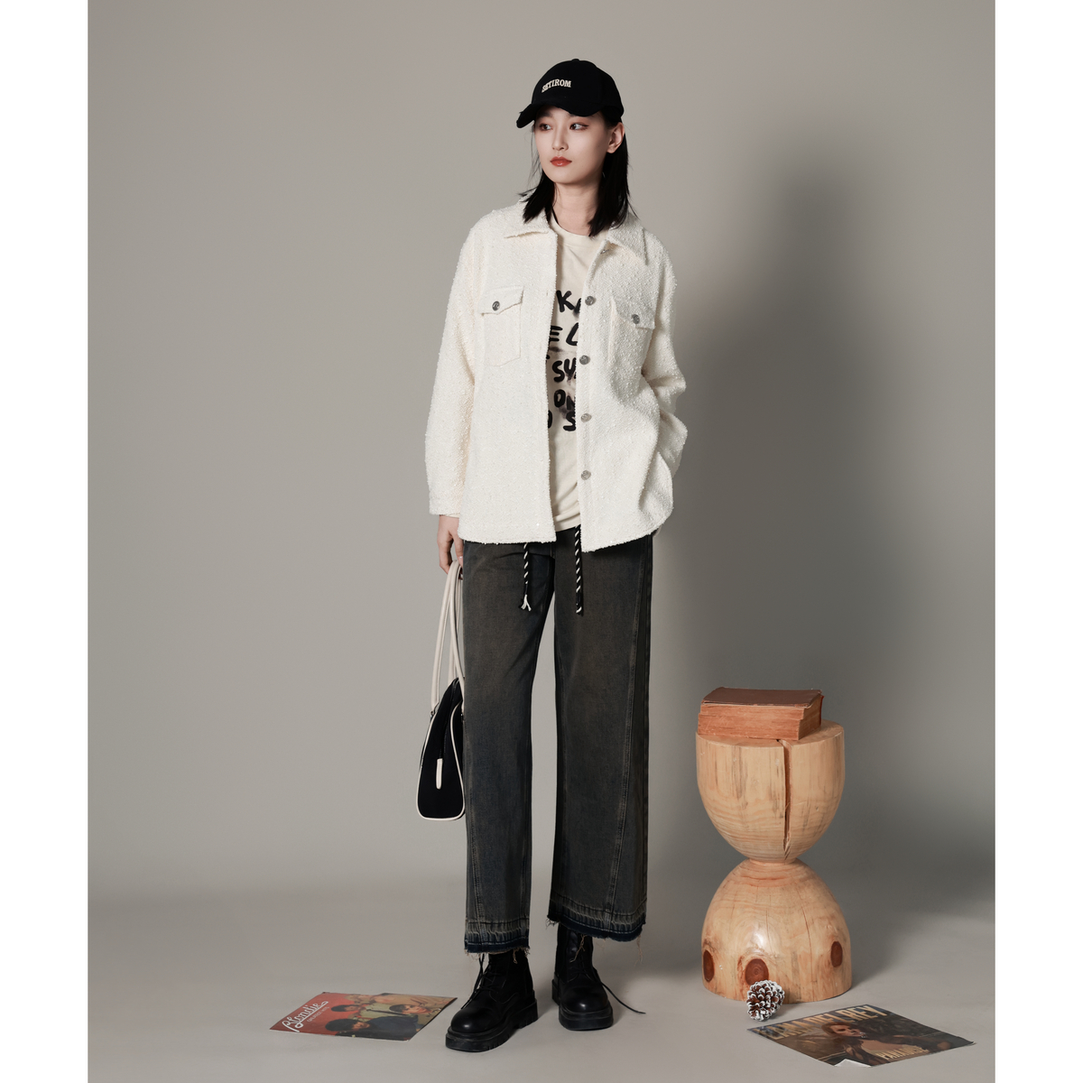 西町村屋针织印花圆领长袖T恤女装春季新款休闲宽松小衫AA9106002