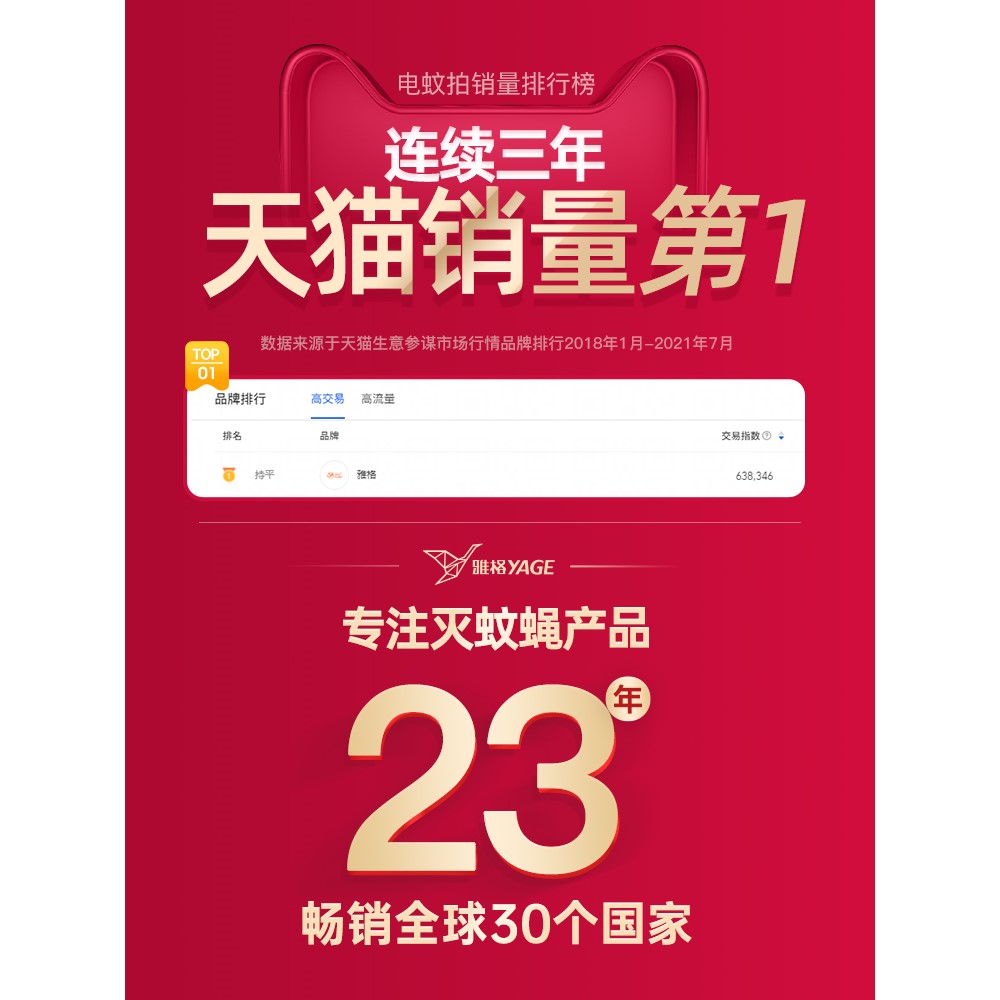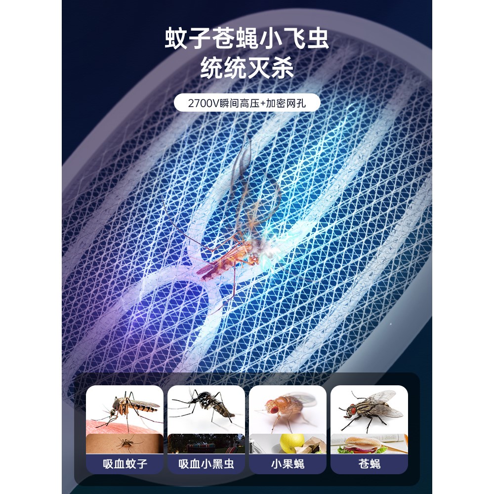 雅格电蚊拍充电式家用超强力灭蚊灯二合一自动诱蚊子网拍苍蝇神器