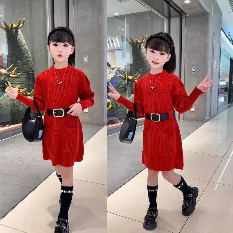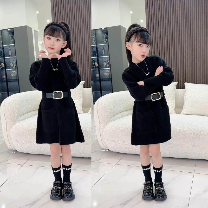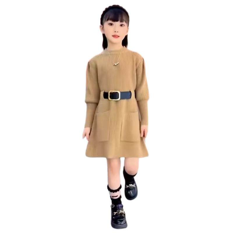 女童连衣裙秋冬装2024新款大儿童收腰设计感法式打底洋气毛衣裙子