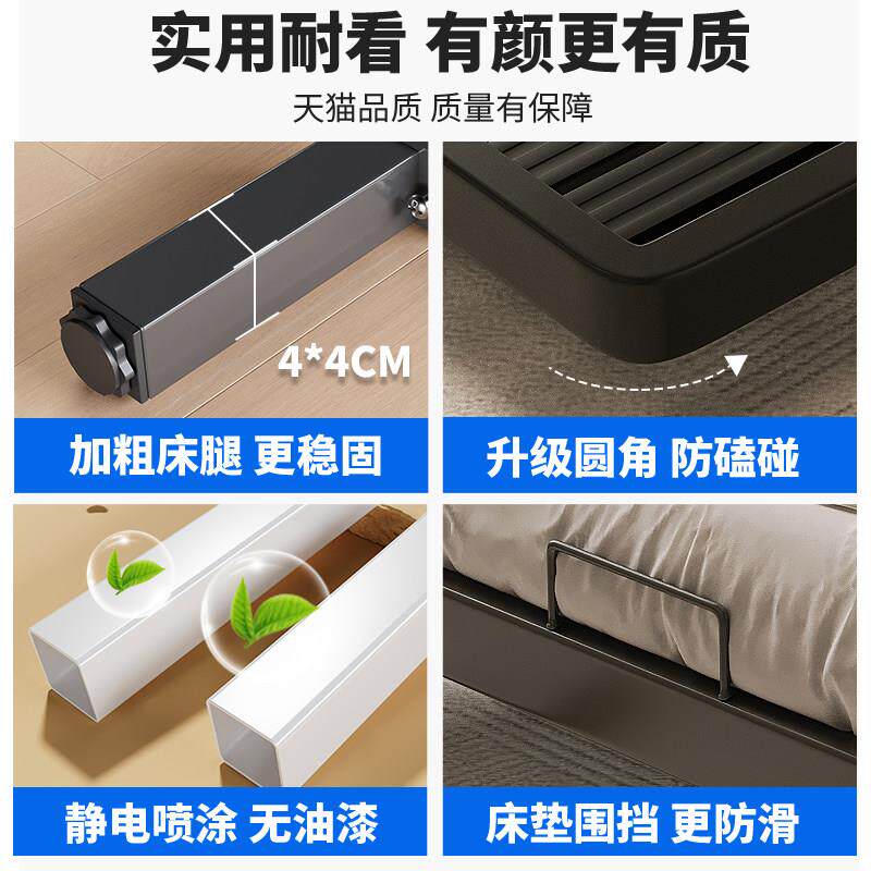 铁艺床悬浮床现代简约加厚加固单双人床1.8m床架1.5m齐边榻榻米床