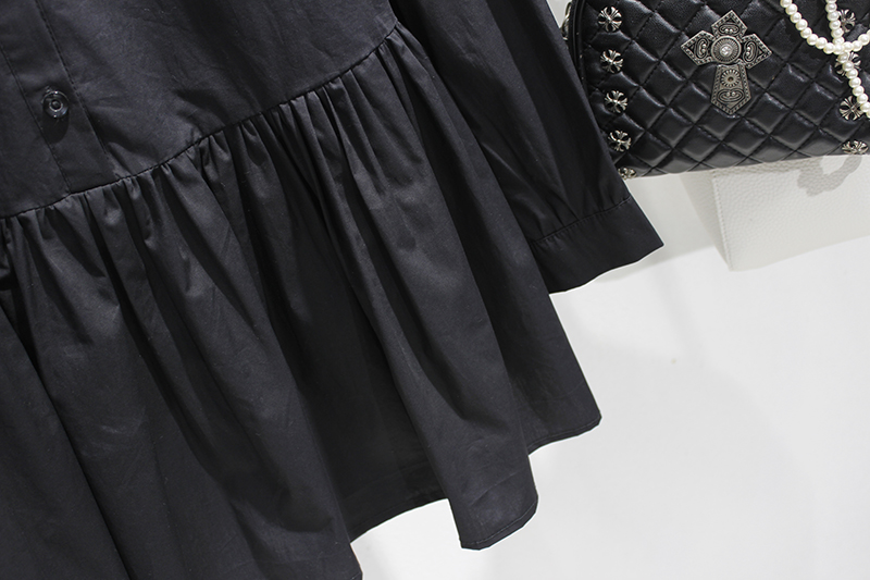 原创女装秋冬黑色娃娃衫女衬衫外套韩版百褶花边海军领有大码