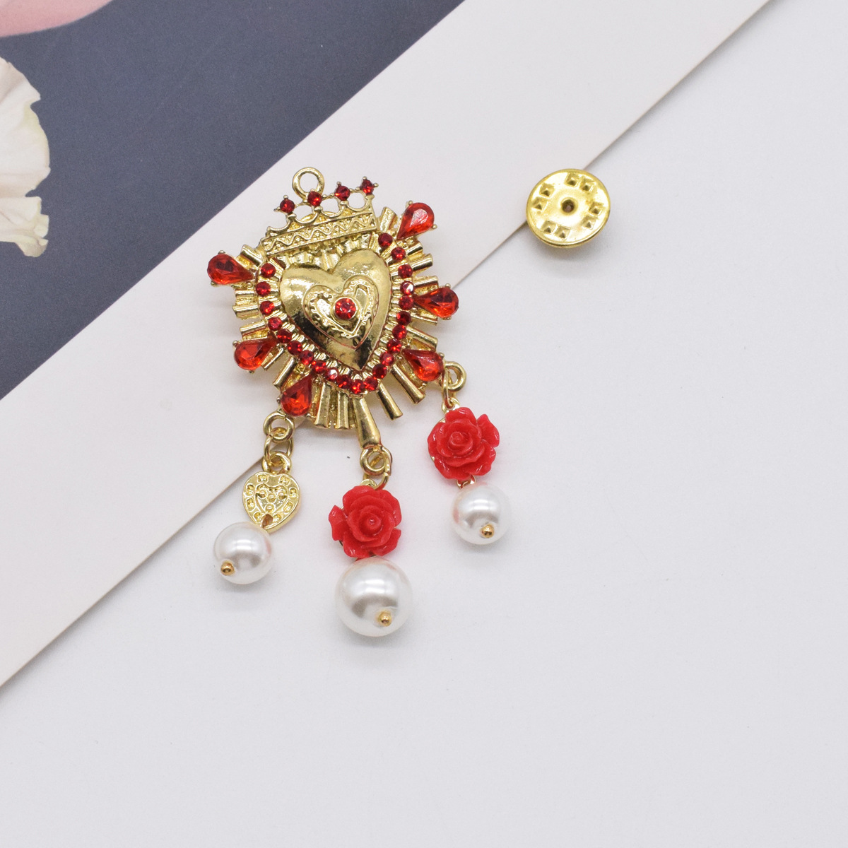 欧美气质镶钻爱心流苏珍珠胸针轻奢气质胸花外套别针配饰品女