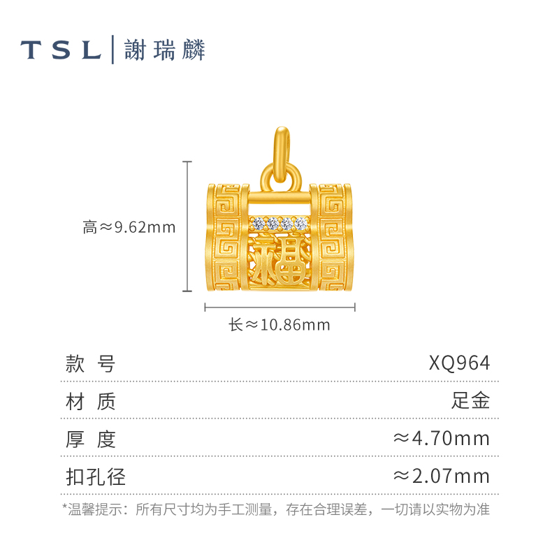 TSL谢瑞麟璀璨金钻系列黄金吊坠古法金花丝福字镶钻挂坠XQ964