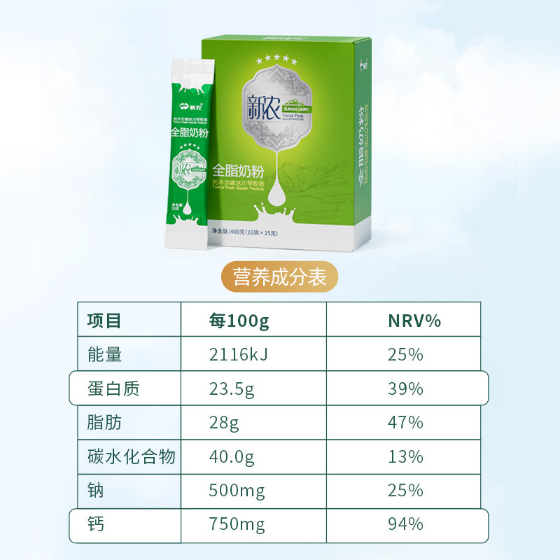 【1月产】新农奶粉盒装新疆全脂学生中老年牛奶粉400g