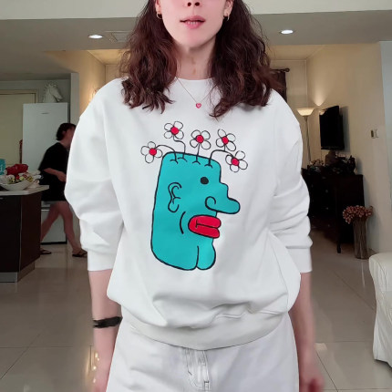 韩系卡通印花秋季新款宽松百搭休闲圆领长袖卫衣