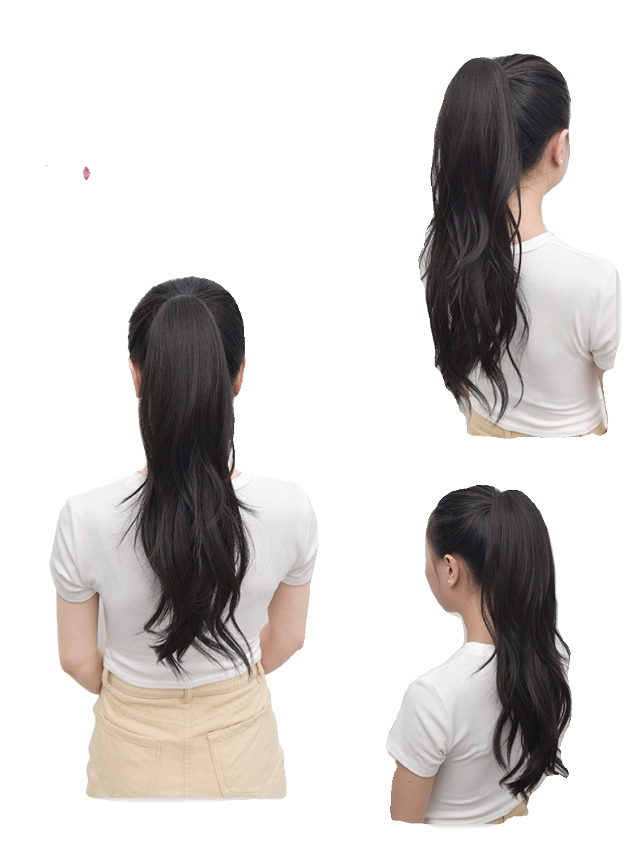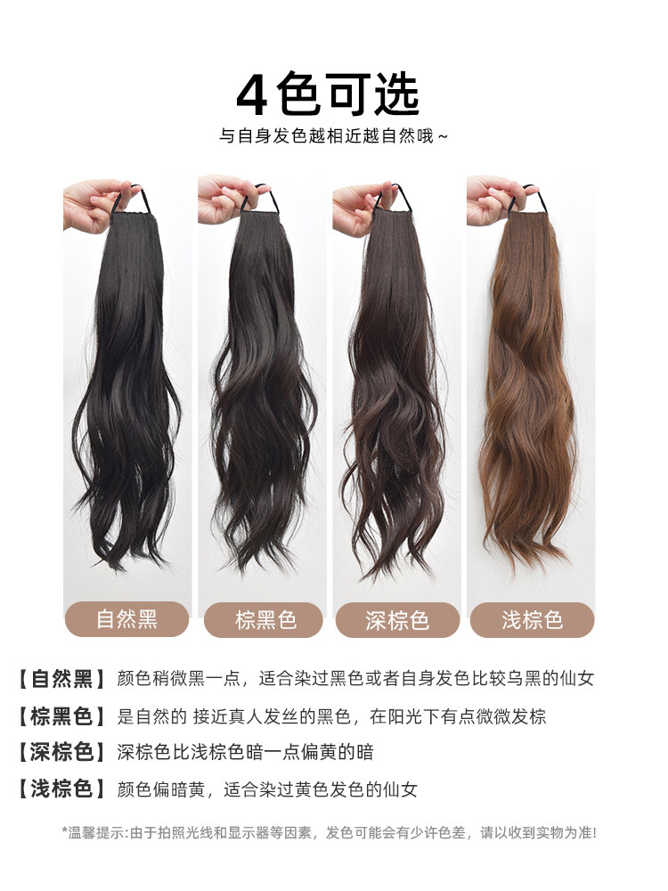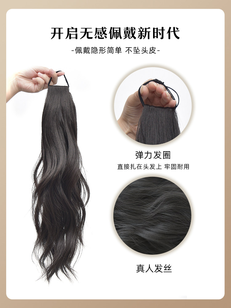 皮筋款马尾假发女自然轻盈新中式长发微卷发圈款可扎高低马尾辫子