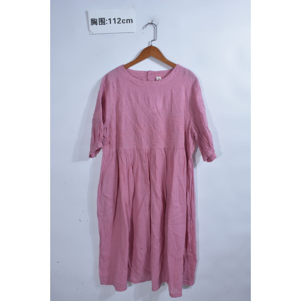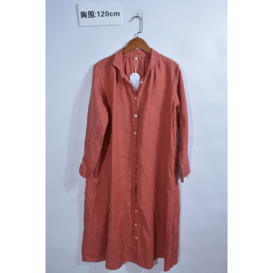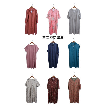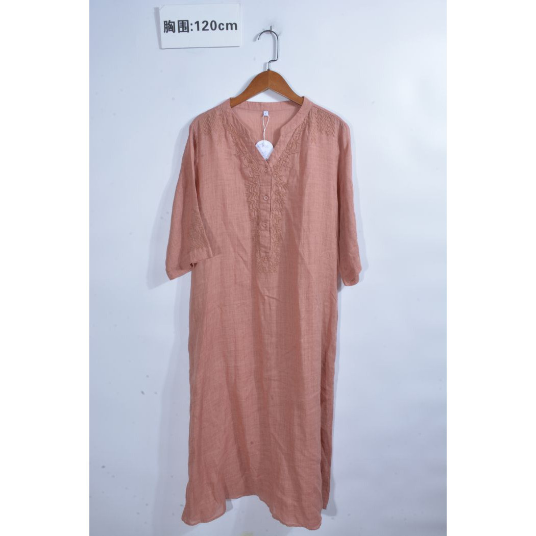 古着vintage汉麻亚麻苎麻纯色麻料超长连衣裙ML4