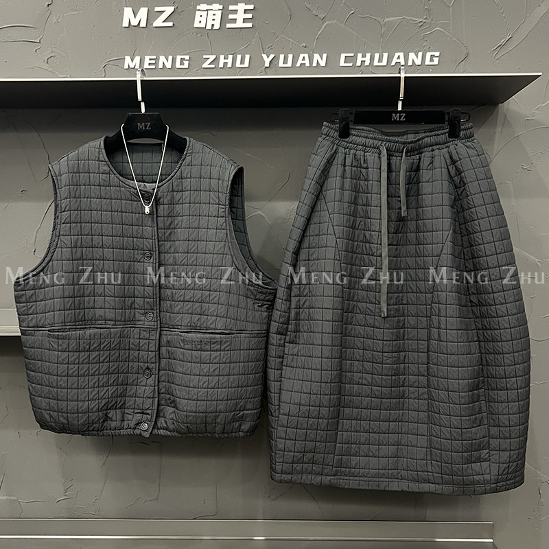 高端欧货冬季新款高级感巨好看的夹棉背心马甲气球裙时尚套装女