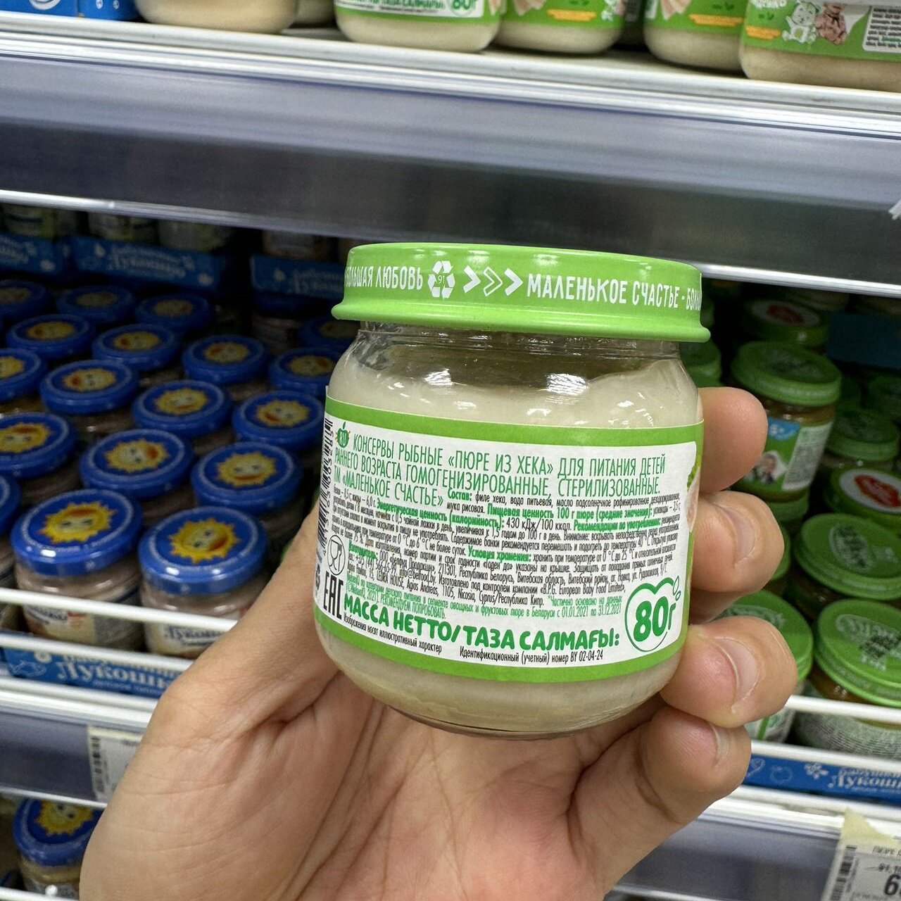 俄罗斯进口Счастье婴幼儿辅食泥鳕鱼泥无盐无添加8+ 80g