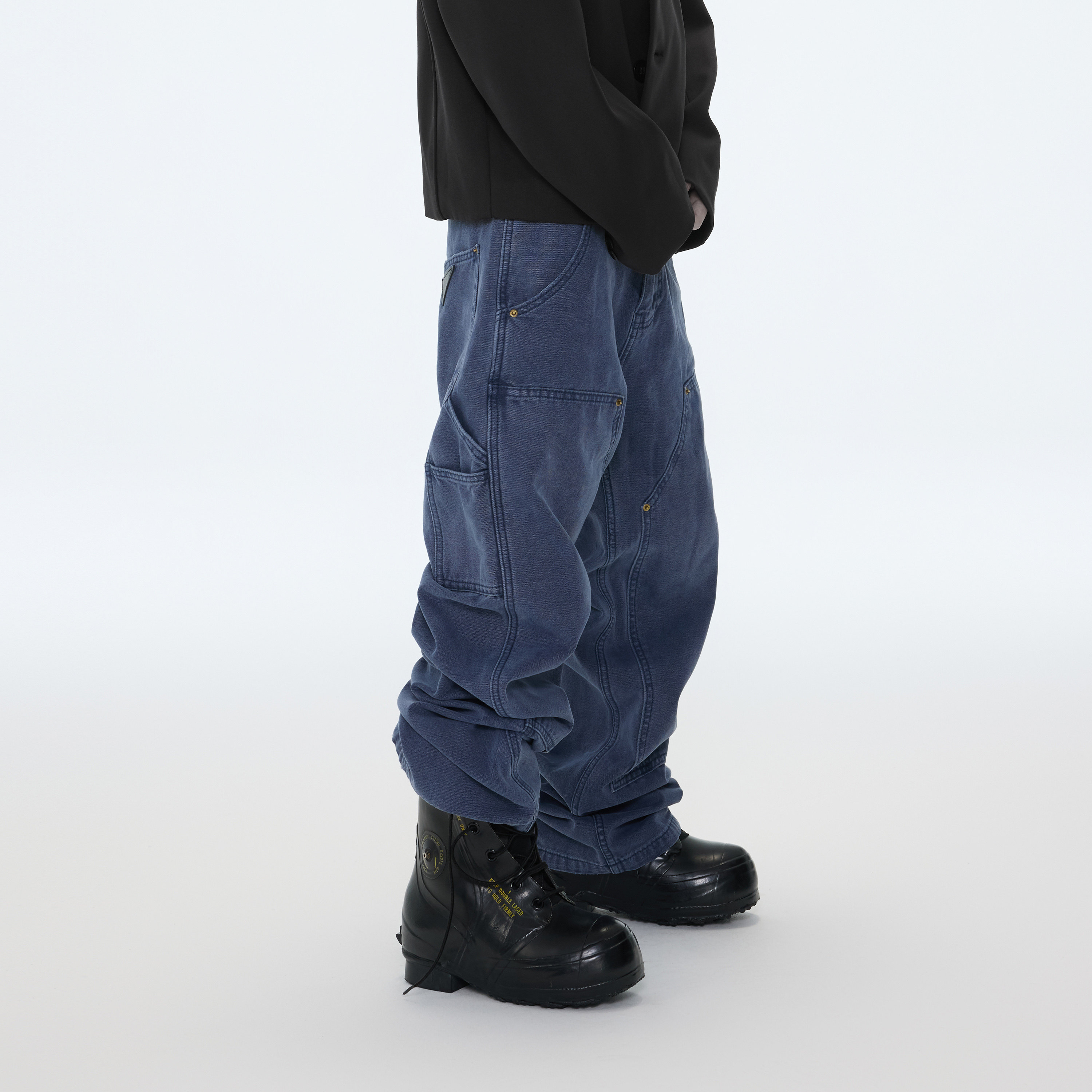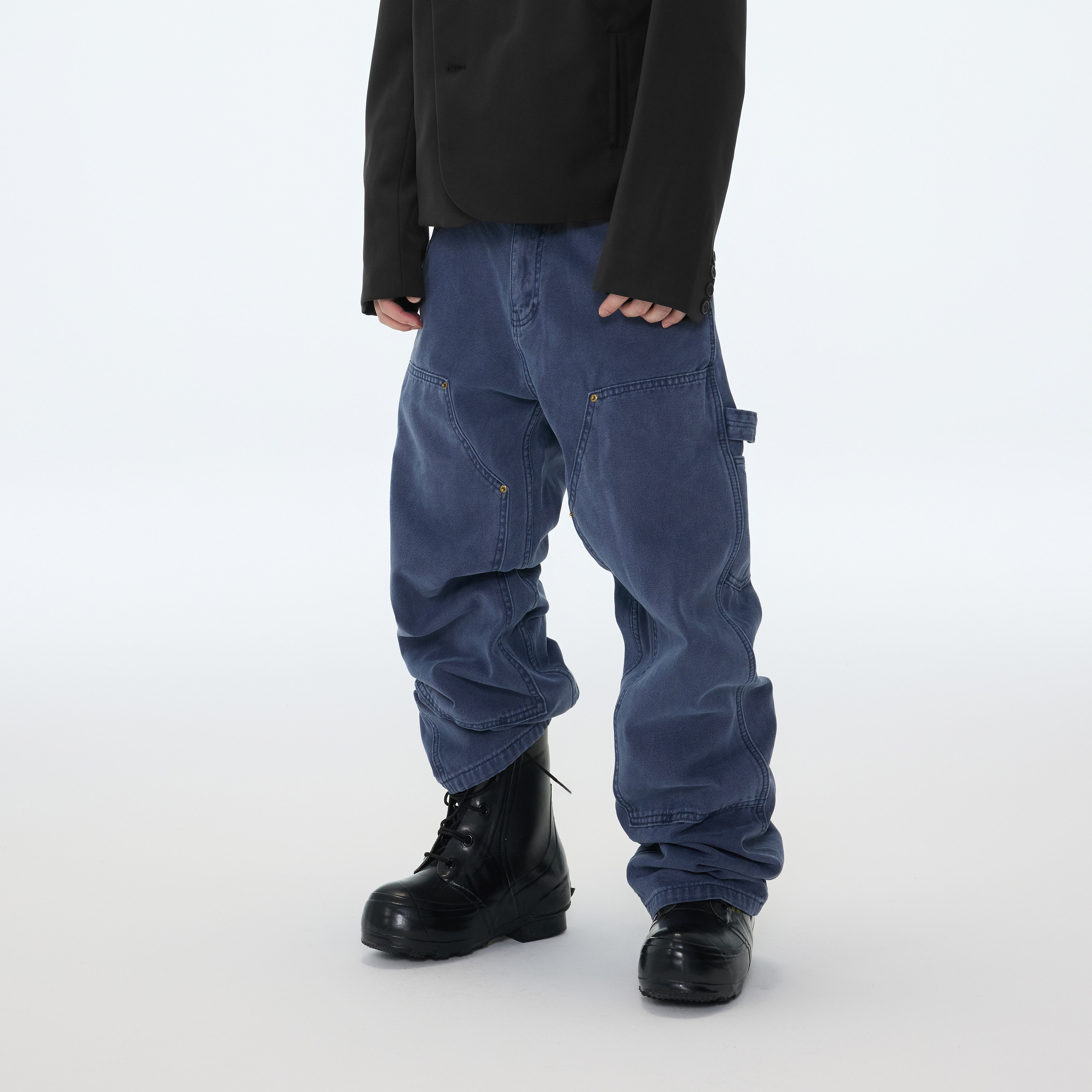 ASTT 25AW 水洗做旧宽松直筒棉制帆布双膝伐木裤工装长裤