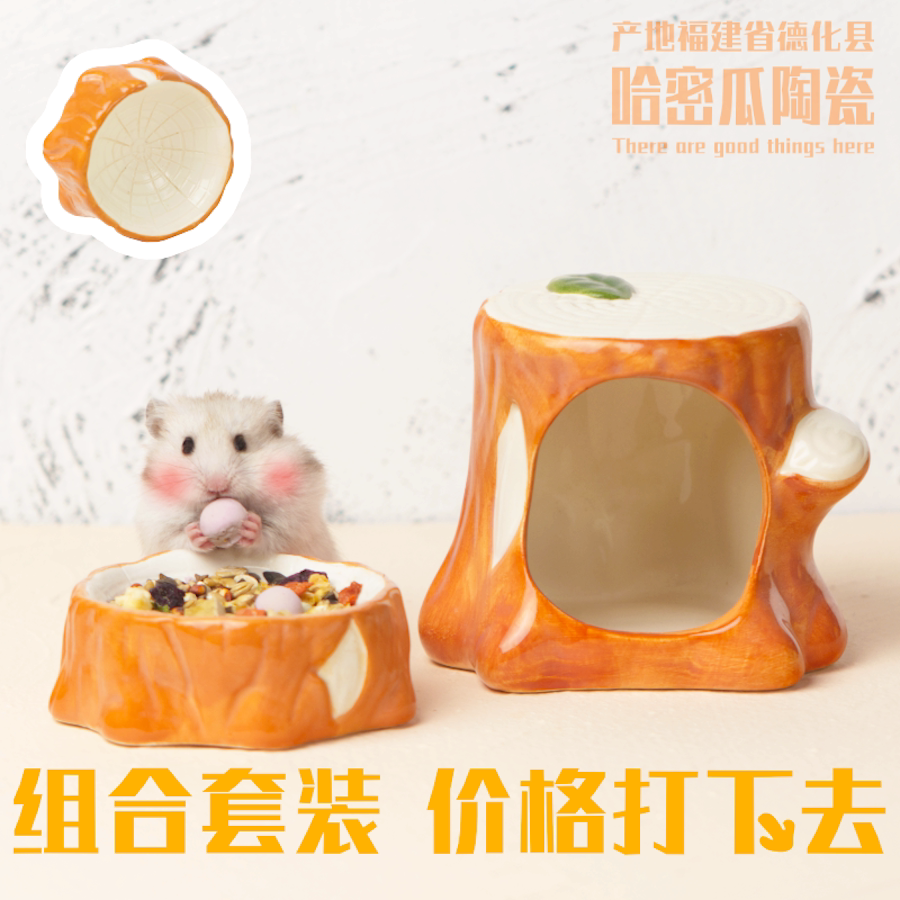 陶瓷树墩仓鼠食盆陶瓷碗防翻花枝鼠喂食器金丝熊造景用品家具