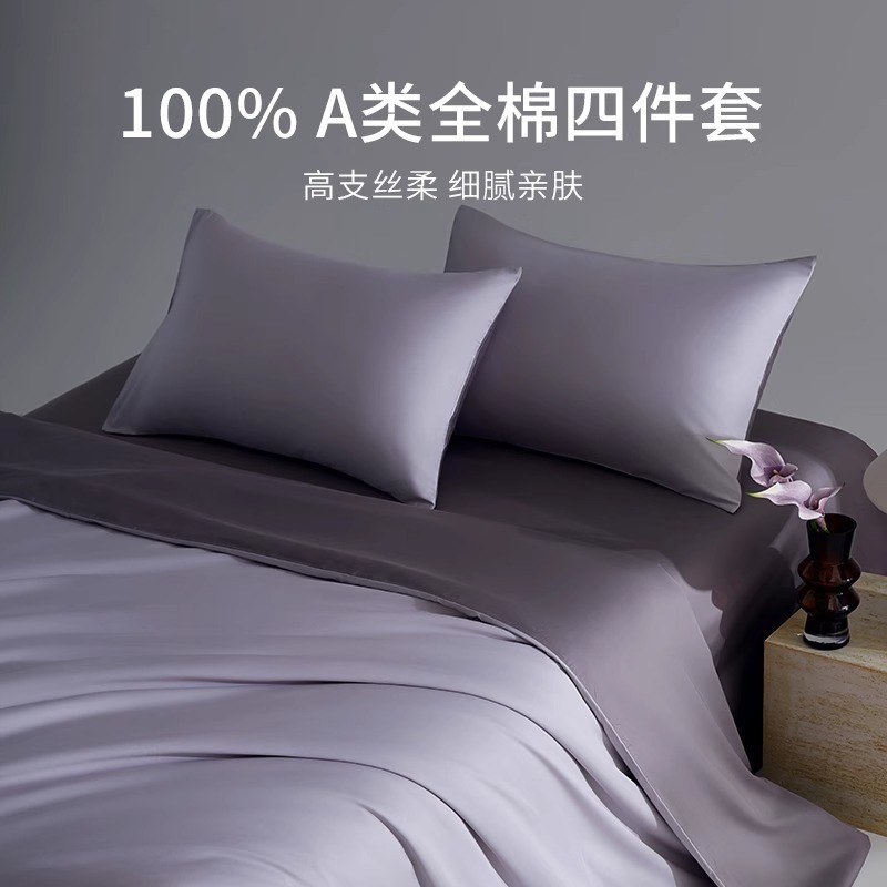A类100支纯棉四件套裸睡新疆长绒棉简约纯色全棉被套床单床上用品