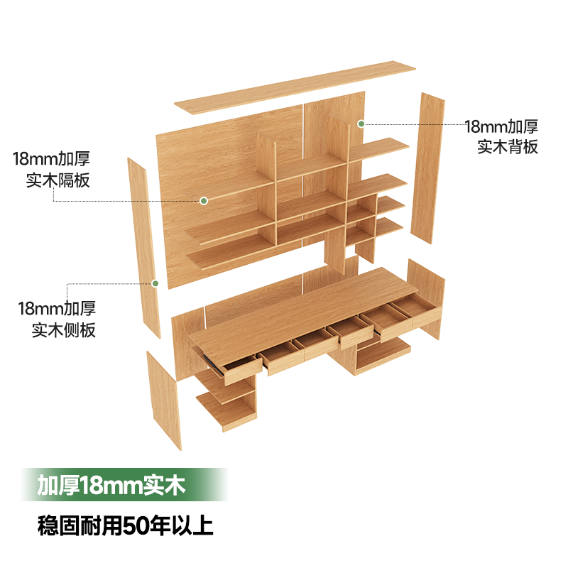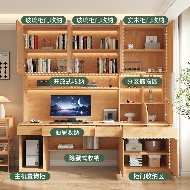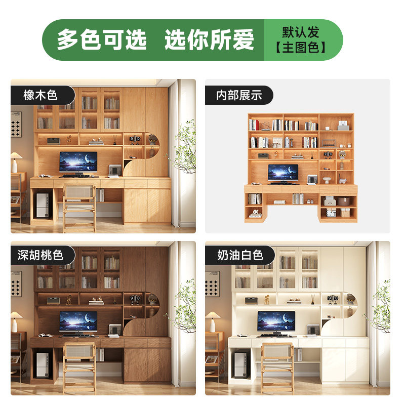 定制实木书桌书柜书架一体学习桌写字桌卧室家用靠墙原木电脑桌子