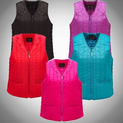 女士弹力显瘦羽绒棉马甲秋冬短款棉背心中老年保暖坎肩拉链小马夹