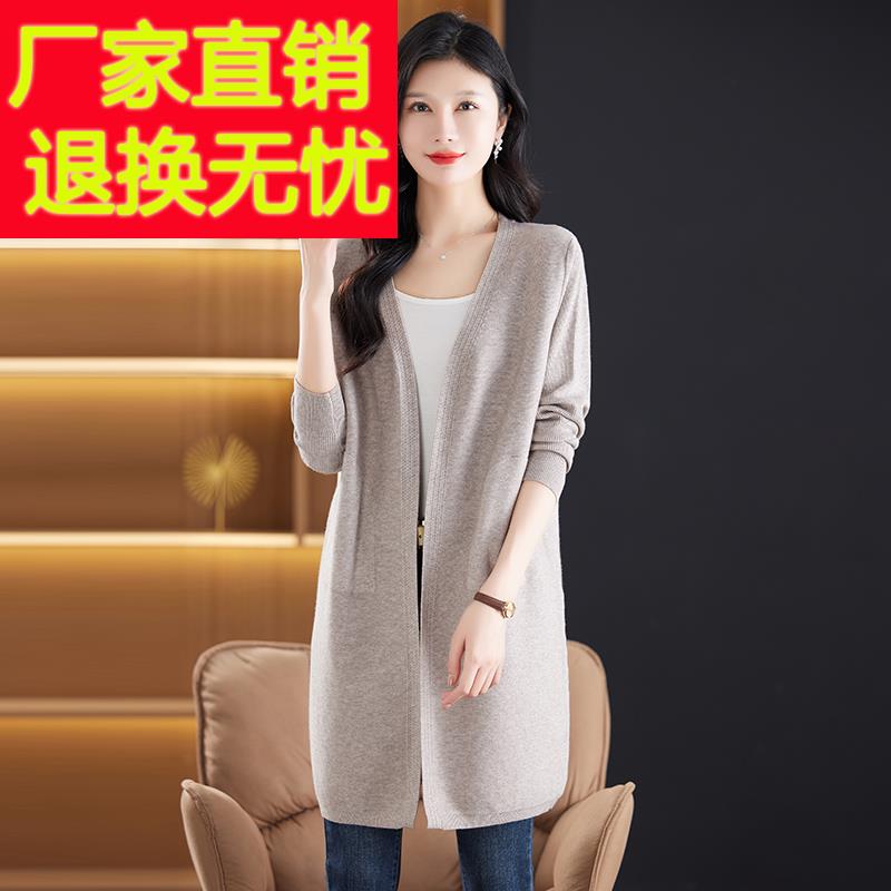 春秋薄款羊毛针织开衫女中长款毛衣外套宽松大码时尚妈妈外搭披肩
