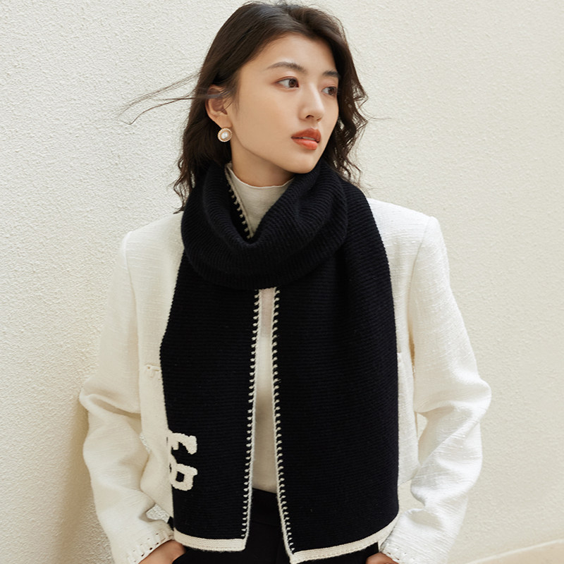 siggi 纯羊毛围巾女生冬特种绣花小香风千金百搭围脖披肩生日礼物